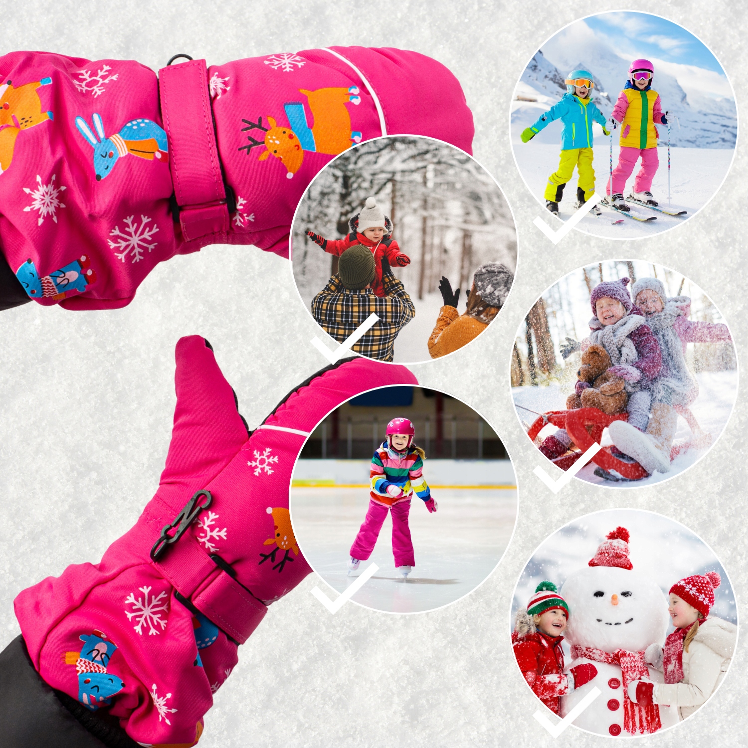 ДЕТСКИЕ ПЕРЧАТКИ ЗИМНИЕ ЛЫЖНЫЕ ПЕРЧАТКИ ДЛЯ ДЕТЕЙ ТЕПЛЫЙ РОЗОВЫЙ