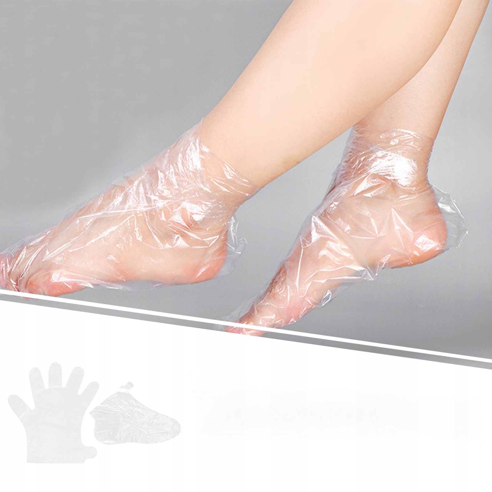 RĘKAWICZKI JEDNORAZOWE DO STÓP Z NAWILŻENIEM PRZEZROCZYSTE WIELOZADANIOWE