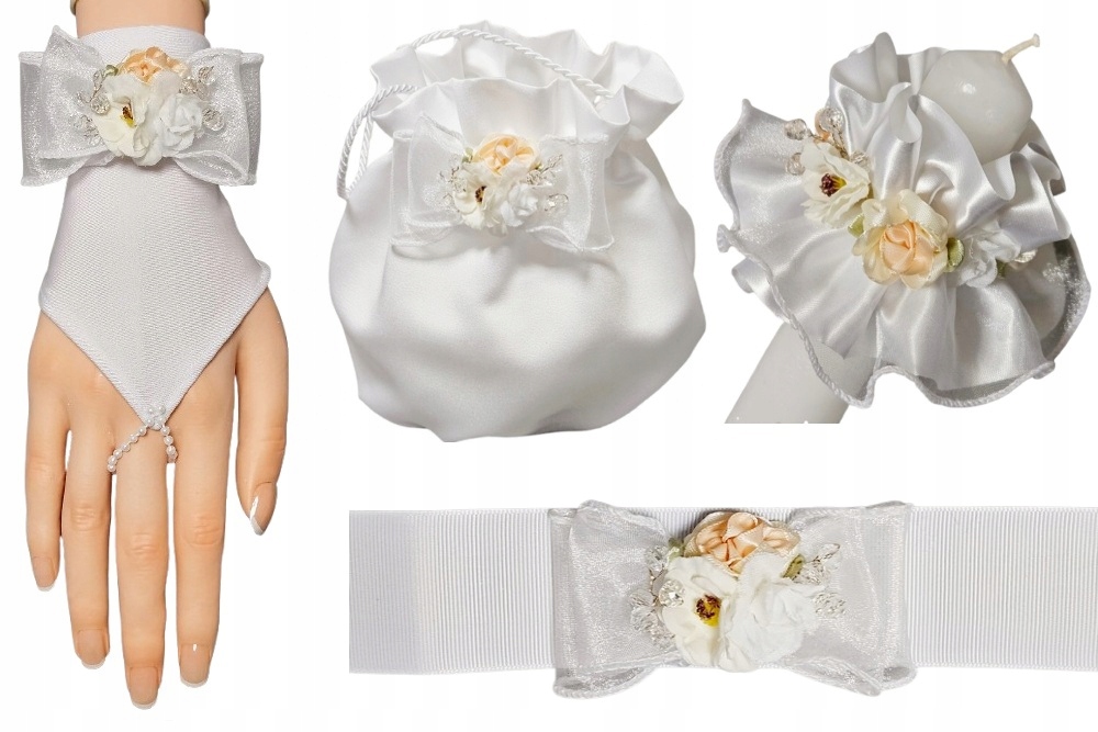 Rękawiczki komunijne z bransoletką. Rękawiczki zakładane na jeden paluszek