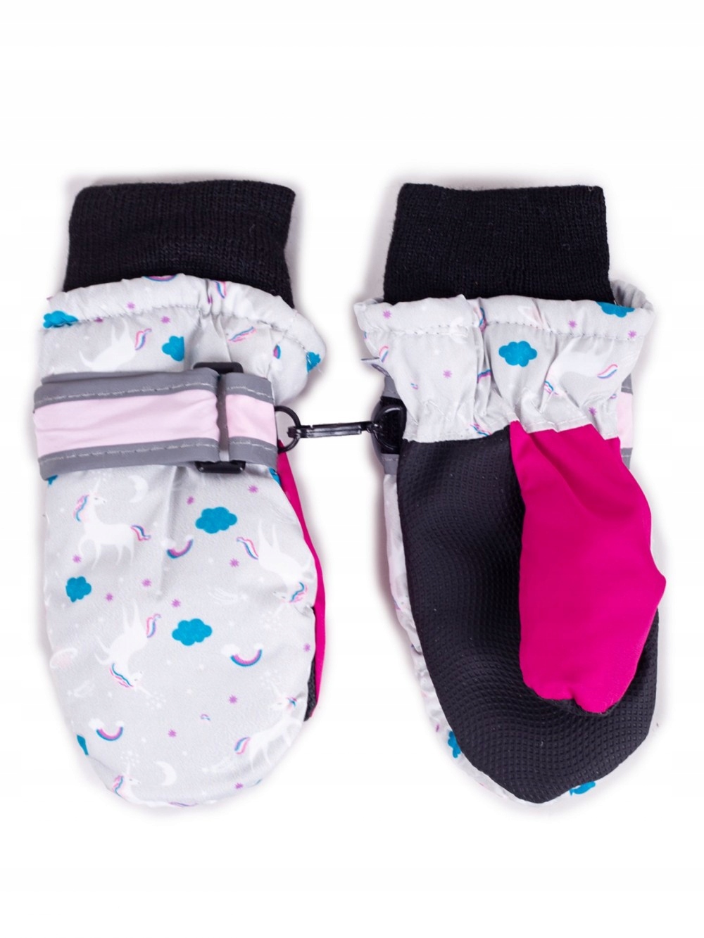 Перчатки Ski Girls серого и розового цвета с мотивом единорога. Внутренняя часть перчатки отделана красивым флисом.