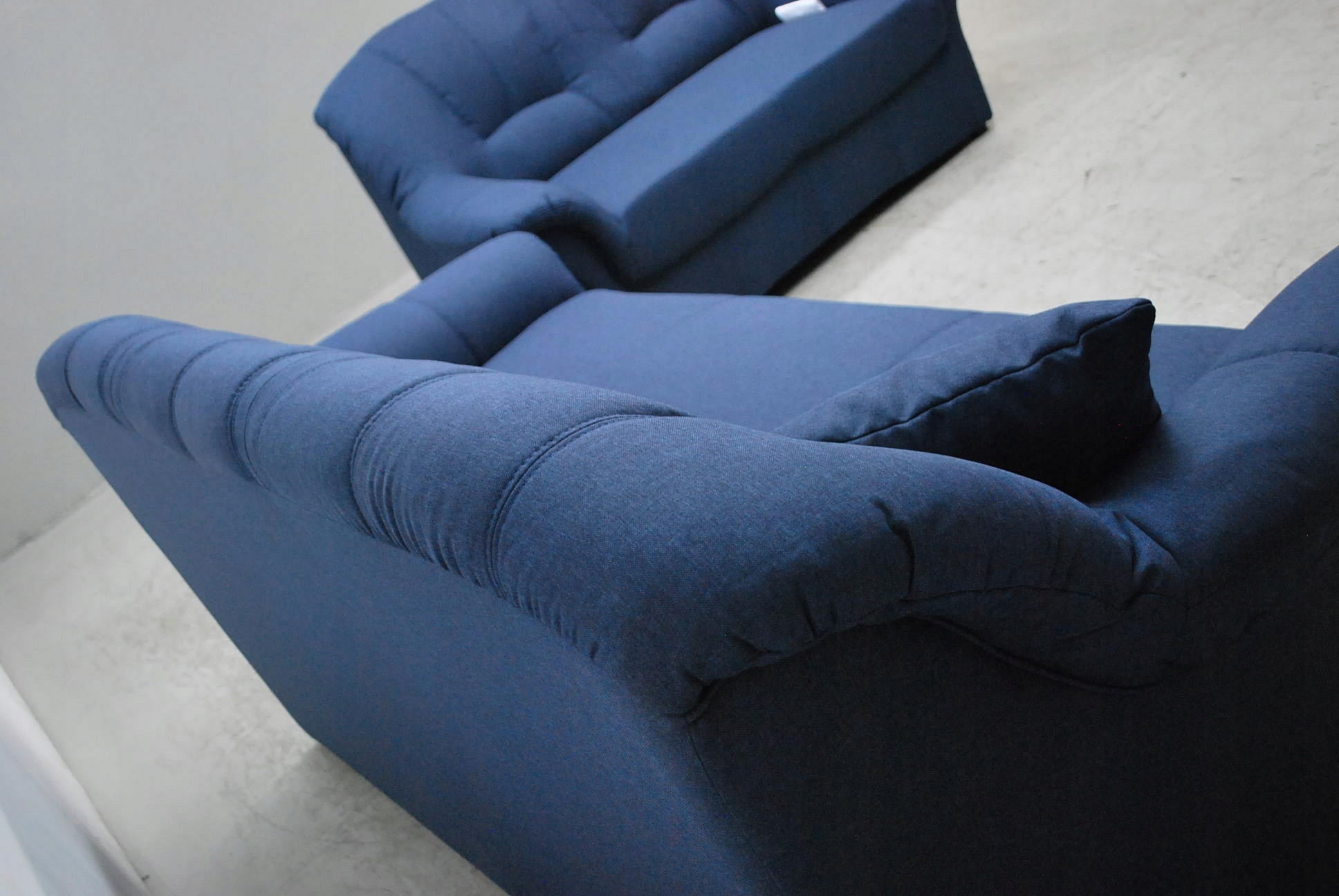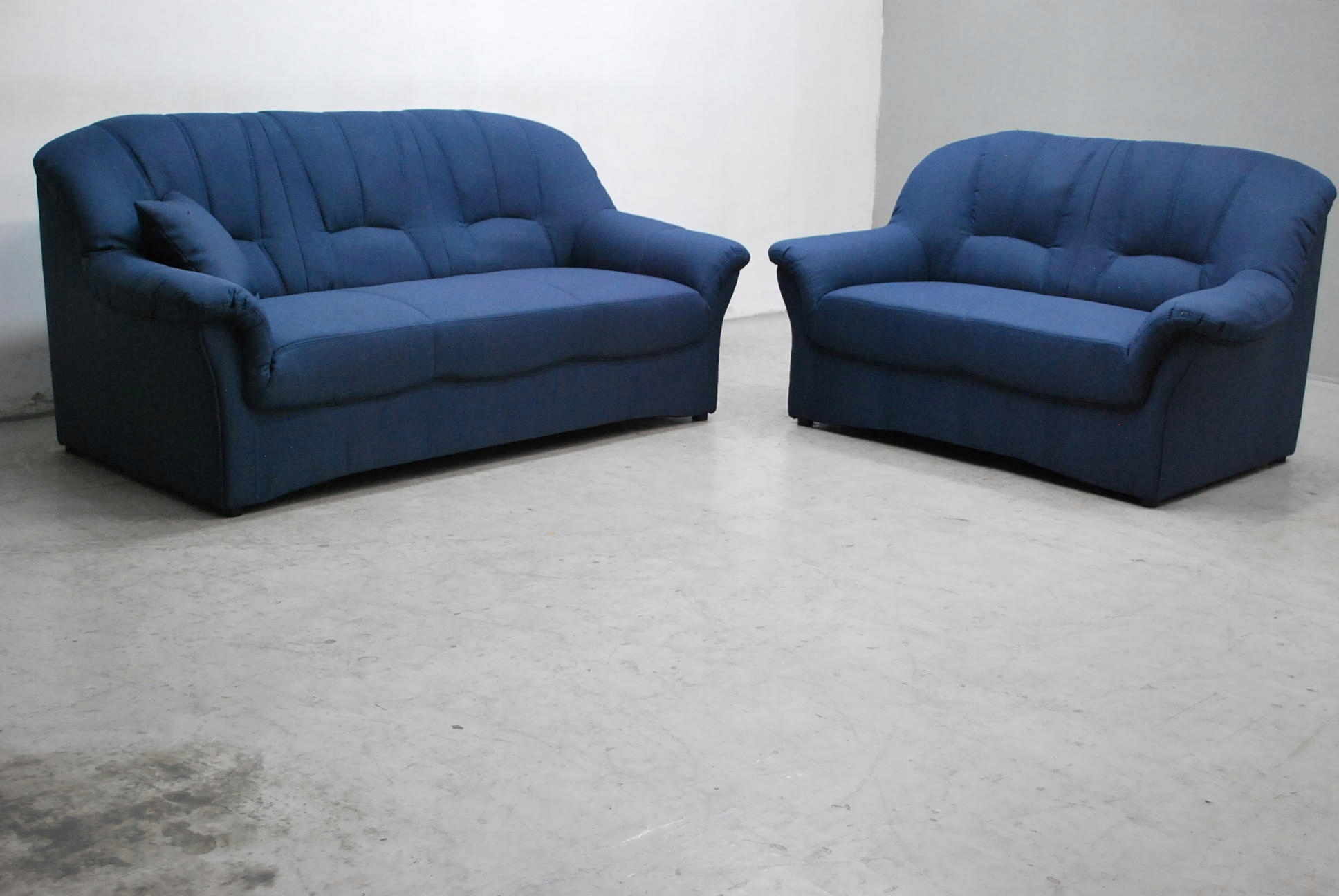 Комплект изготовлен в заводских условиях из конструкционной ткани высочайшего качества с тонким переплетением. Качественная ткань не изнашивается. не трескается, не гнется и обладает высокой прочностью. Диваны не имеют функции сна. Комплект темно-синего цвета.