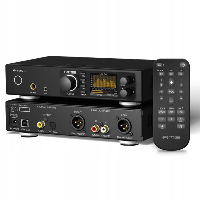 Являясь самым универсальным ЦАП на рынке, ADI-2 DAC FS обеспечивает балансные/несбалансированные аналоговые выходы, выход для наушников Extreme Power, сверхмалошумящий выход IEM, аппаратную 4-ступенчатую регулировку выходного уровня SteadyClock FS, обработку сигнала на основе DSP, внешний источник питания, совместимость с классом USB и максимальную частоту дискретизации до 768 кГц, а также воспроизведение DSD и Direct DSD. Входы SPDIF можно даже записывать через USB — как и следовало ожидать от RME — этот ЦАП представляет собой настоящий 2-канальный полнодуплексный аудиоинтерфейс