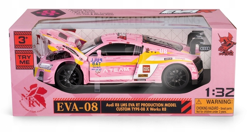 1:32 Audi R8 LMS EVA RT Производственная модель Пользовательская модель Пользовательская модель Пользовательской модели Тип-08, модель в масштабе 1:32. Автомобиль с легкими элементами, характерный звук транспортного средства ралли и привод с вытяжкой верно воспроизводит свойства раллийных автомобилей, дополнительно открытых дверей и крышки двигателя позволяет увидеть детали интерьера транспортного средства. Коллекция моделей Hobby RMZ представляет собой раллийные автомобили, участвующие в гонках разных федераций со всего мира. Коллекция включает в себя автомобили с логотипами известных модных брендов, таких как AAPE, Bathing Ape или Evisu, которые спонсируют команды ралли. Металлический автомобиль с пластиковыми элементами, изготовленными с максимальной заботой о высококачественных материалах, будет соответствовать ожиданиям коллекционеров и детей во время игры. Hobby