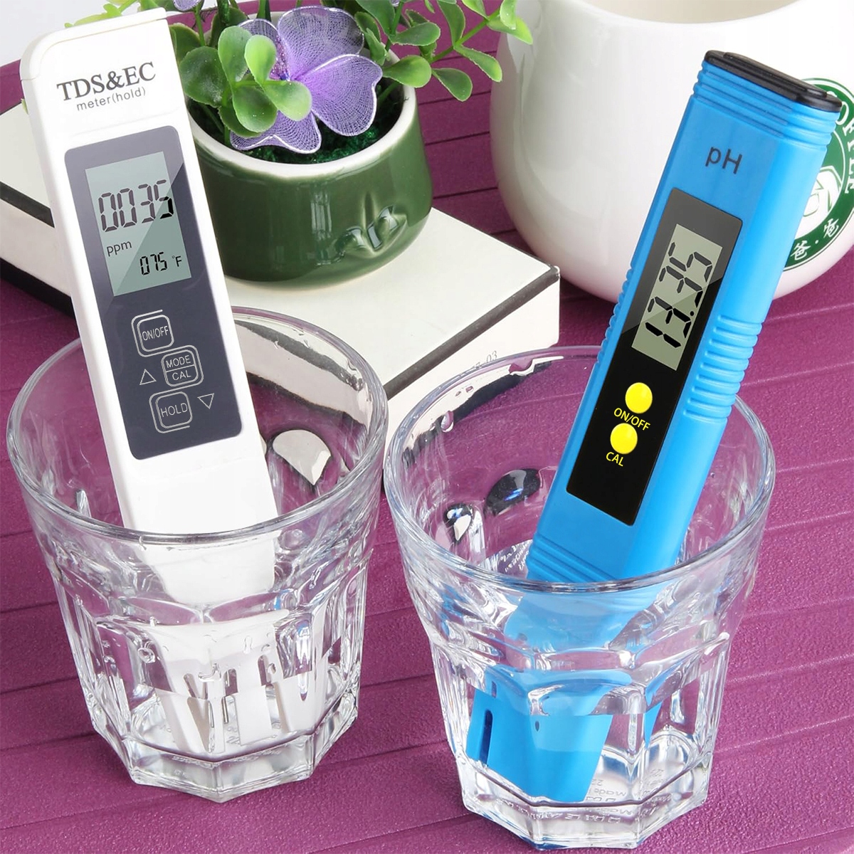 Тест воды 4 в 1: содержит pH -метр и TDS 3 в 1 метре. Отображает важные параметры воды, такие как pH, TD, электрическая проводимость (EC) и температура всего за 30 секунд. Нет больше утомительных сравнений с тестовыми полосами.