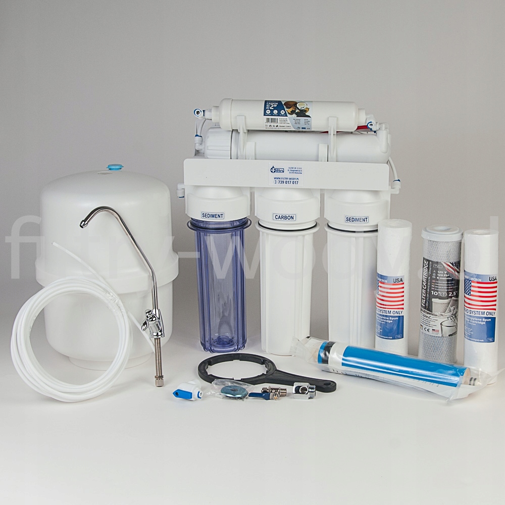 Система обратного осмоса RO5 является самой дешевой системой обратного осмоса в нашем предложении. Полностью готов к работе. Благодаря правильно составленным фильтрующим элементам он позволяет получать кристально чистую воду по низкой цене. Вода, обработанная системой обратного осмоса, пригодна для непосредственного употребления.
