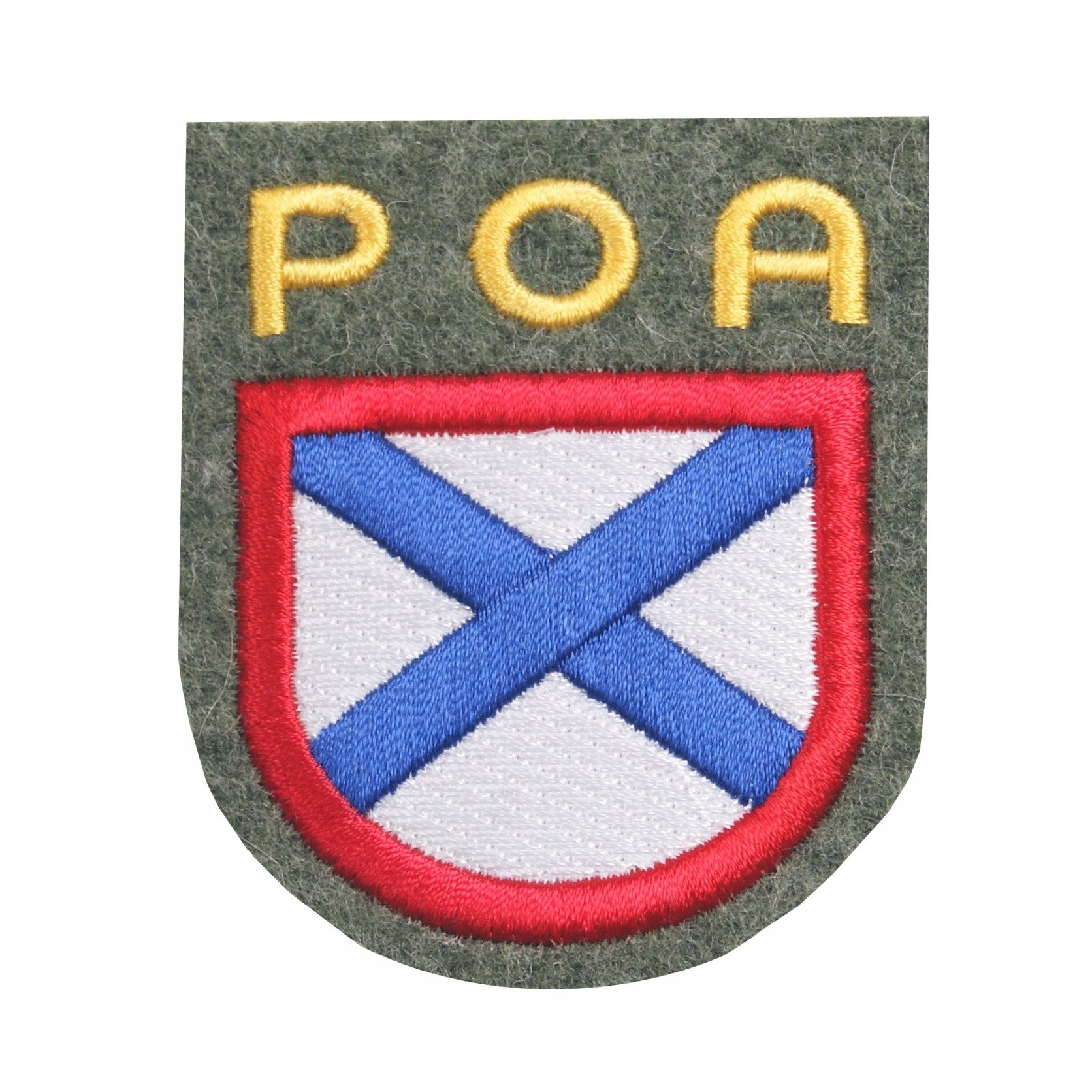 Идеальная копия погона Русской Освободительной Армии — коллаборационистского формирования, состоящего в основном из русских. Нашивка вышита на платье фельдграу.