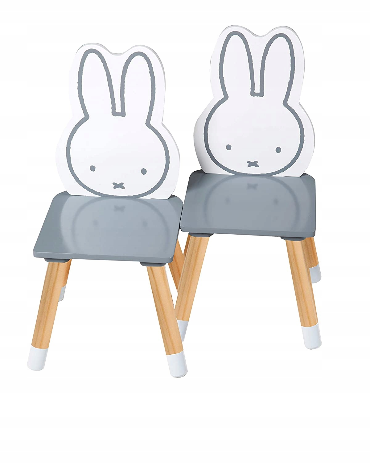 Прекрасный стол и два подходящие стулья. Сиденья детских стульчиков и столешница окрашены в темно-серый цвет. Столешница дополнительно украшена милым миффи® и цифрами 0-9. Отличительной особенностью детского мебельного комплекта являются спинки стульев miffy®.