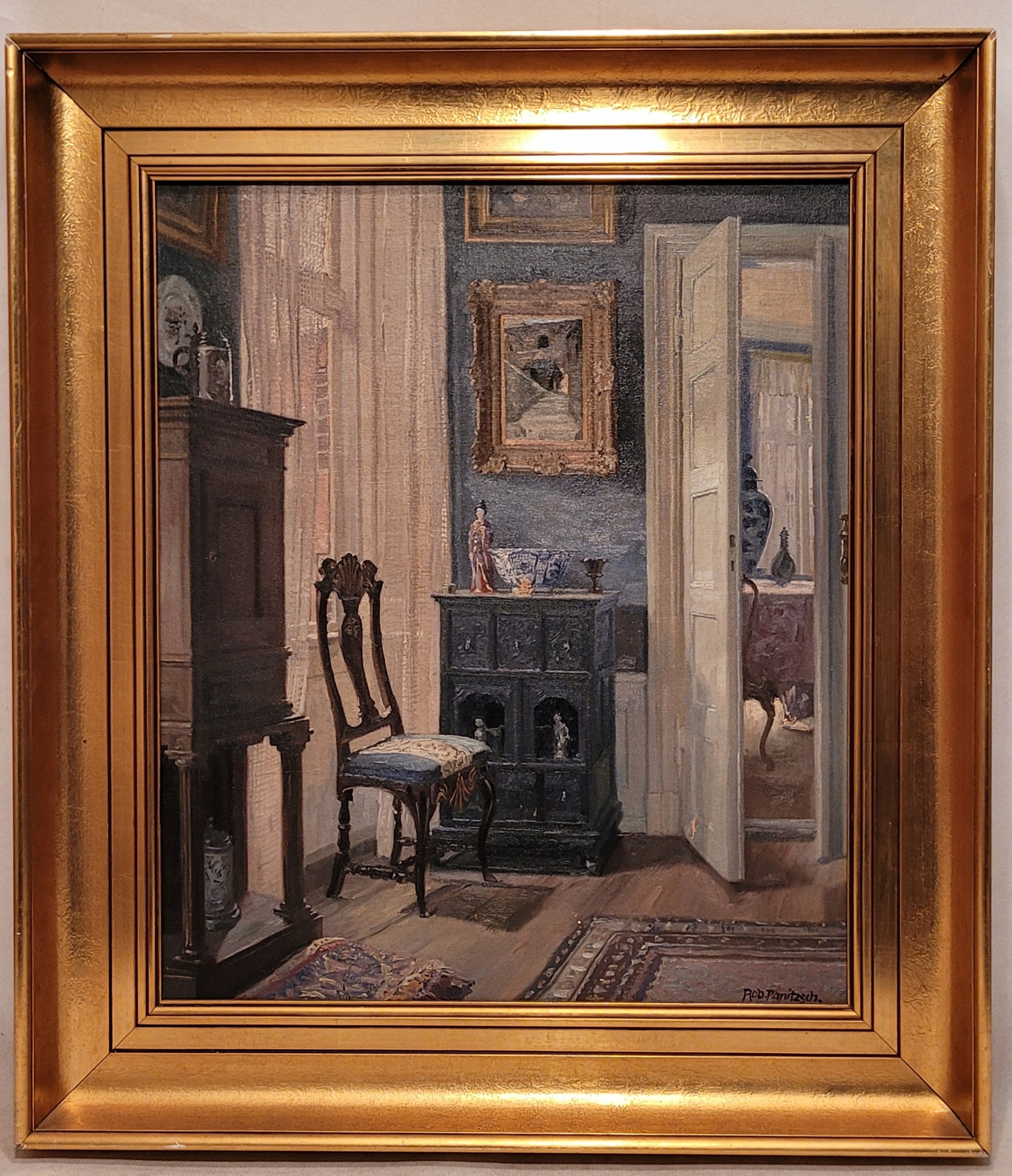 РОБЕРТ ПАНИЧ (1879-1949) - «СТАРЫЙ ИНТЕРЬЕР», прекрасная картина маслом.