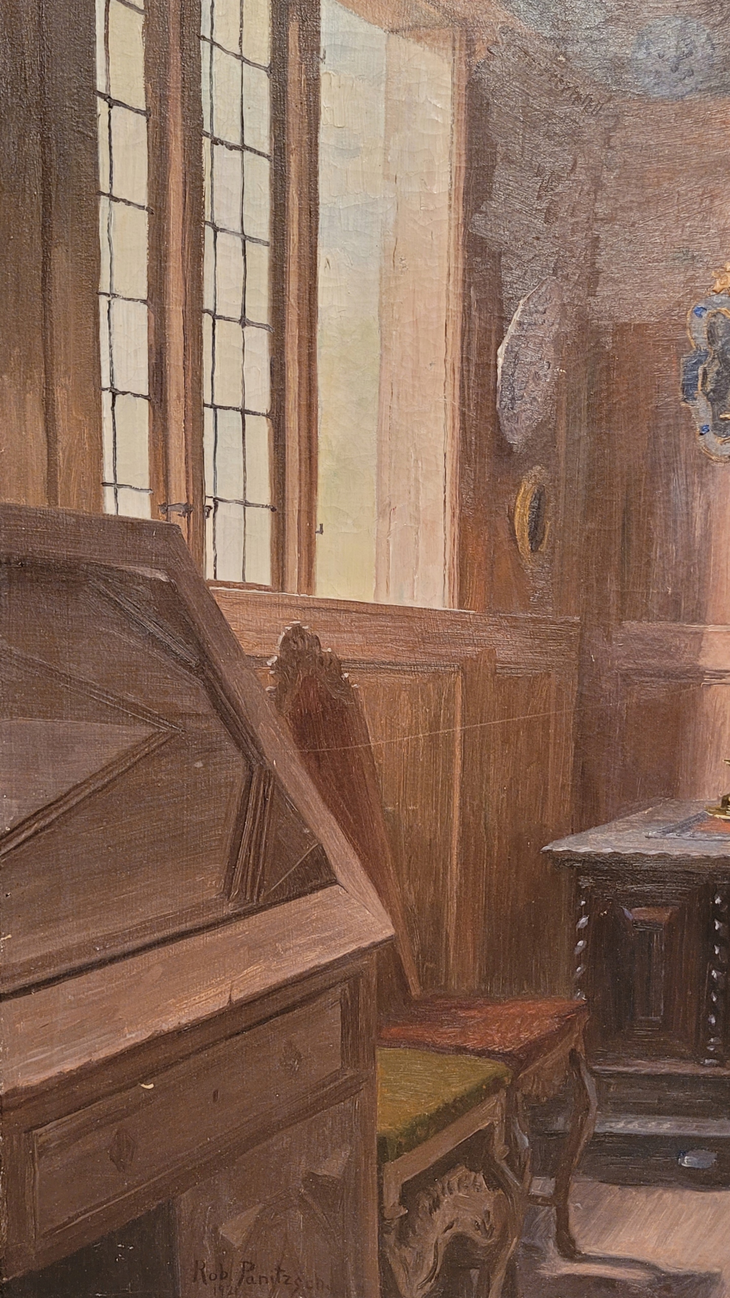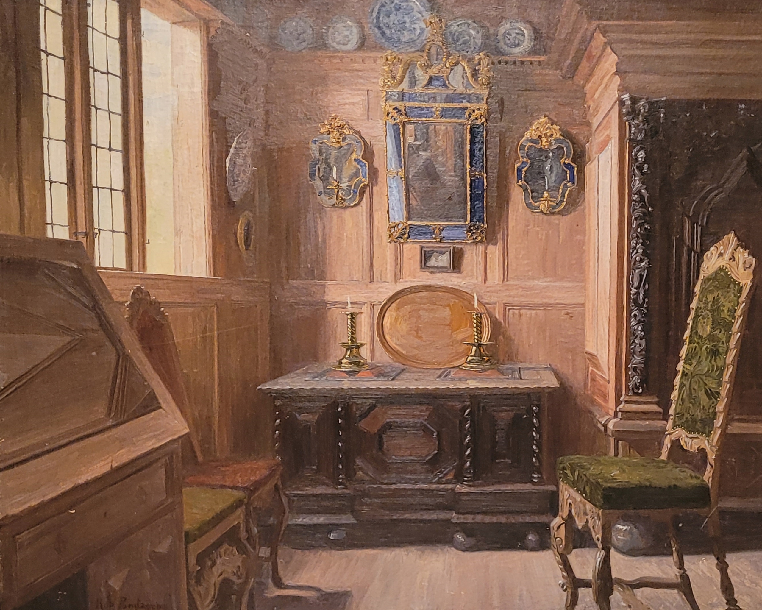 РОБЕРТ ПАНИЧ (1879-1949) - «СТИЛЬНЫЙ ИНТЕРЬЕР», красивая картина маслом -1921 г.