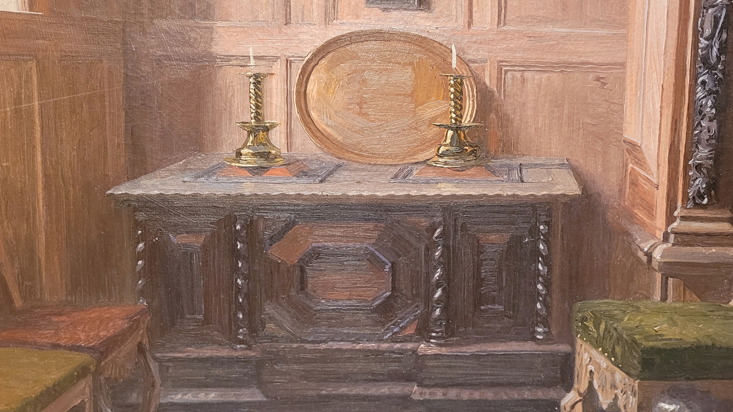 Предмет продажи - красивая, старинная картина маслом "СТИЛЬНЫЙ ИНТЕРЬЕР".