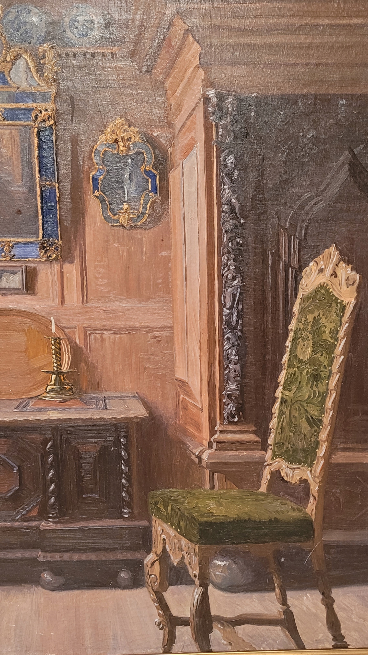 Предмет продажи - красивая, старинная картина маслом "СТИЛЬНЫЙ ИНТЕРЬЕР".