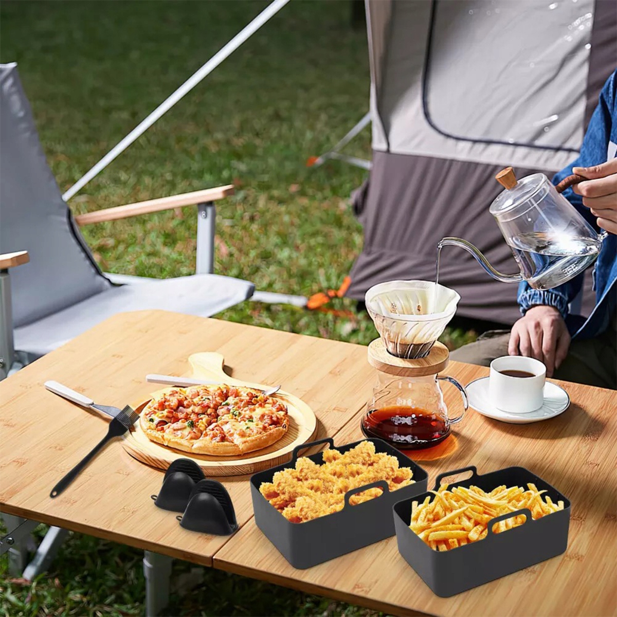 ✴️ Set of accessories for the air -fried French Fryzer consisting of 22 elements: improve your frying experience thanks to 2 silicone molds for the air -fridge, 2 stainless steel grilled grilled grilles, 12 mini cake molds (2 in 6 colors each), 100 oils for oiling, 2 silicone gloves, 1 silicone brush, 1 silicone brush, 1 silicone brush, 1 silicone brush, 1 silicone щетка, 1 силиконовая щетка, 1 силиконовая щетка, 1 силиконовая щетка, 1 силиконовая щетка, 1 силиконовая щетка, 1 ботинки для пищи и 1 опрыскиватель для масла с емкостью 100 мл. Эта коллекция предлагает все, что вам нужно для приготовления вкусных и удобных блюд.