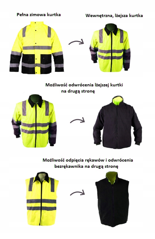 Стильный вырез этого набора курток обеспечивает комфорт круглый год! Внутренняя куртка оснащена съемными рукавами и двумя боковыми карманами. Наружный материал и рефлексивные пояса полностью сертифицированы для соответствия EN ISO 20471.