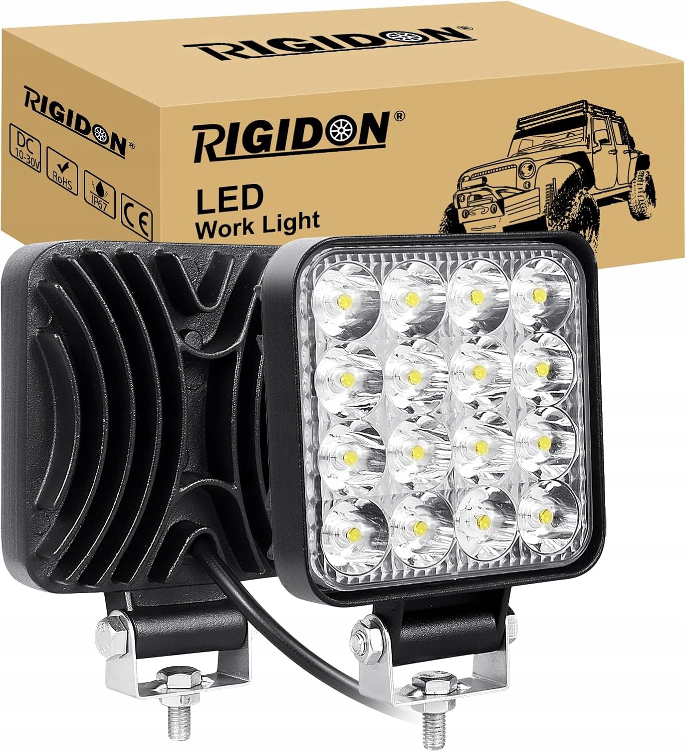 Рабочая лампа 2 ПК. 48 Вт, 6000 К, 12/24 В, водонепроницаемые, 16 светодиодов - Rigidon