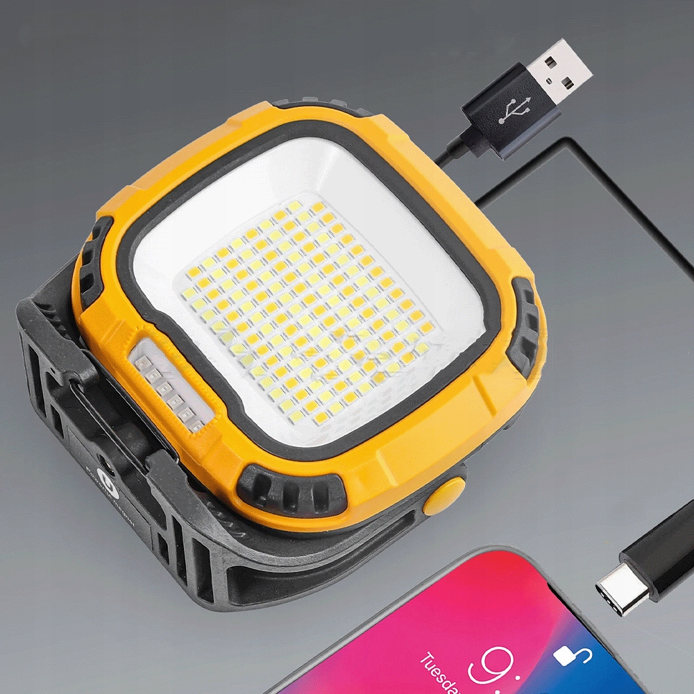 Светодиодный рабочий фонарик • Портативная осветительная лампа 4000 лм • 6 режимов • Powerbank 5000 мАч • Водонепроницаемый IPX6 • Магнит • Желтый