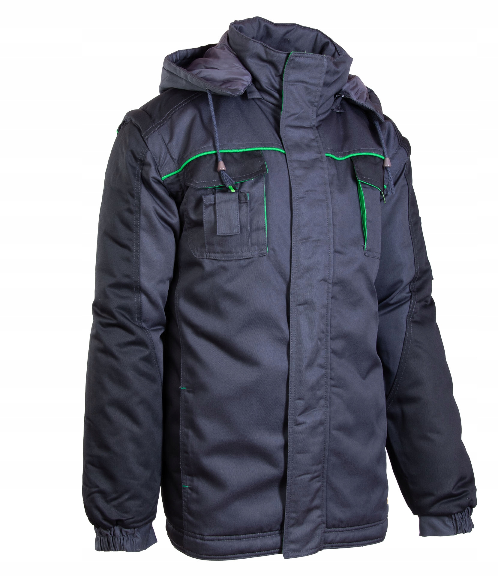 - съемный, регулируемый, утепленный капюшон,