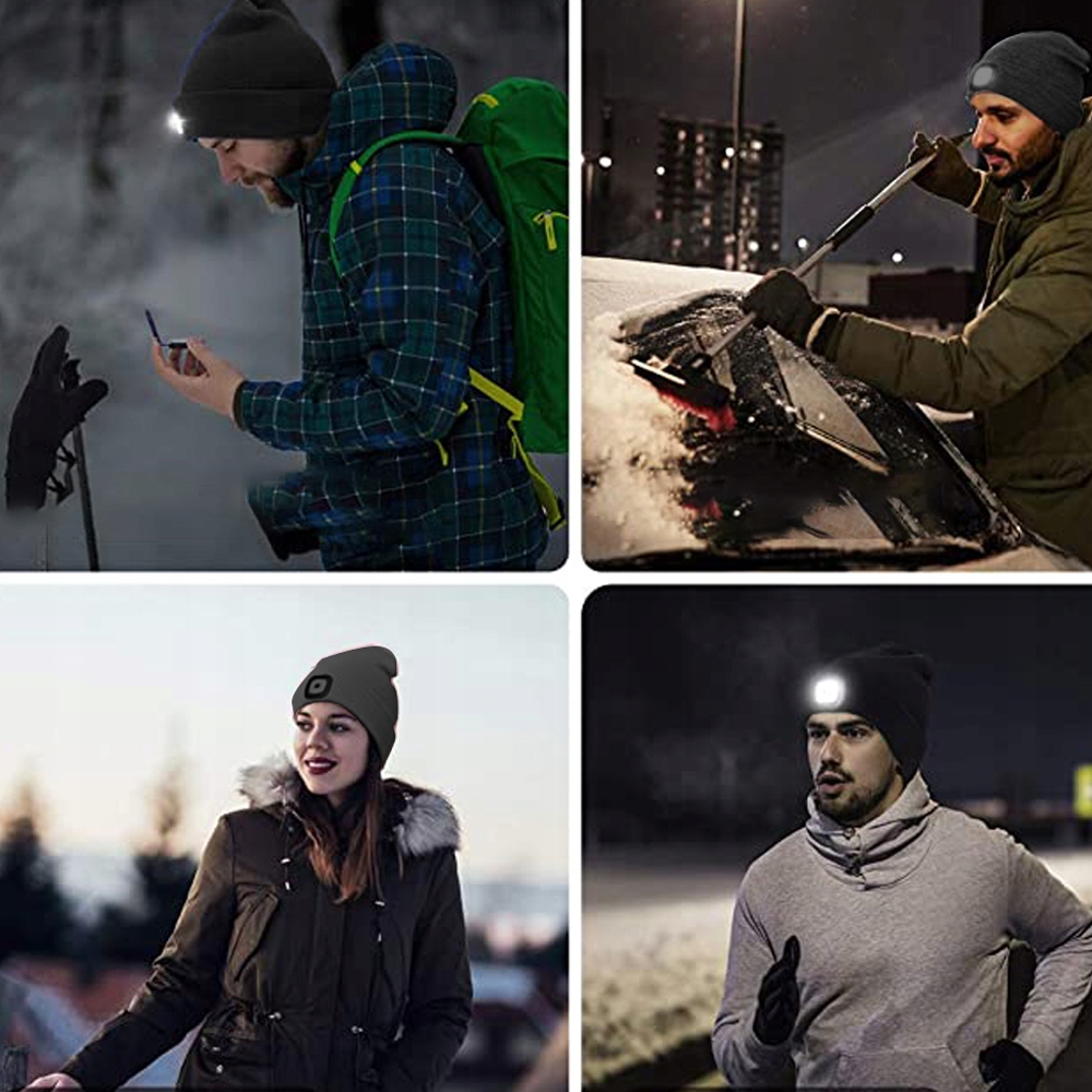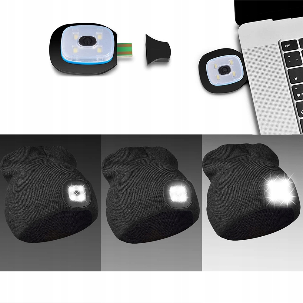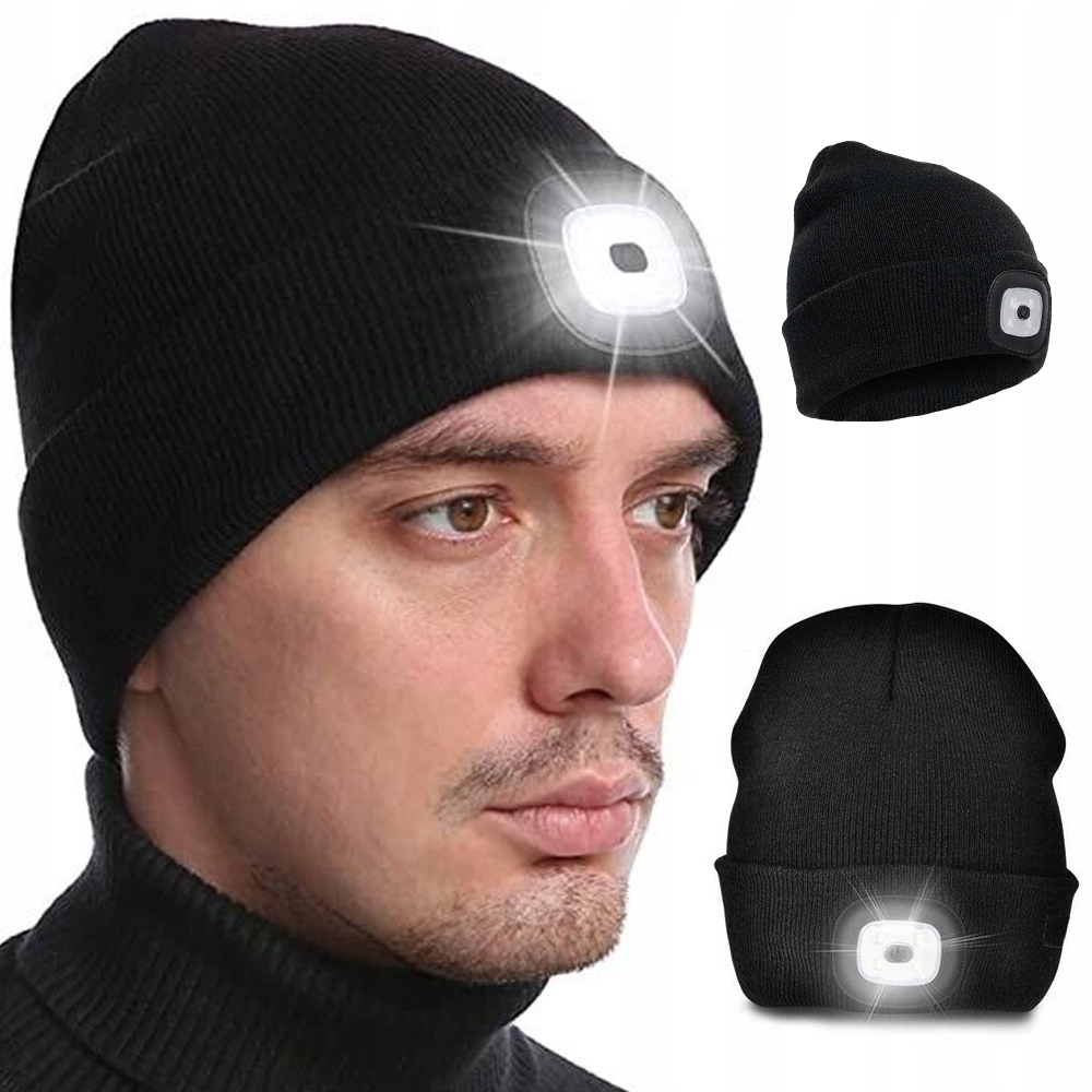 РАБОЧАЯ ЗИМНЯЯ ШАПКА С USB СВЕТОДИОДНЫМ ФОНАРЕМ 3 РЕЖИМА СВЕТА ЧЕРНЫЙ