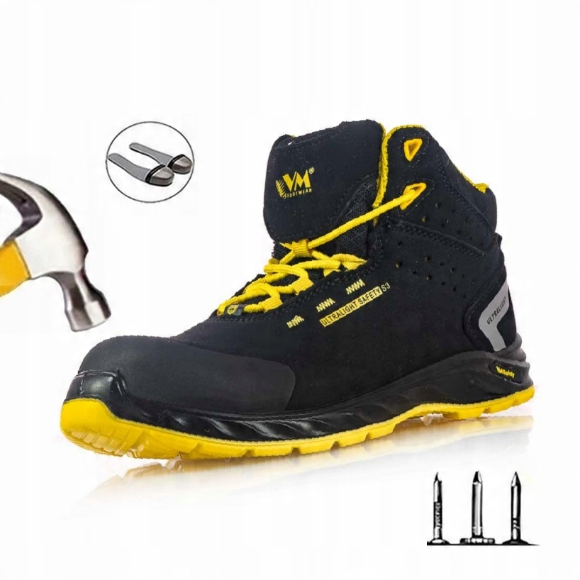 Сверхлегкая обувь, защитные, рабочие, безопасные ботинки VM WISCONSIN S3 ESD SRC, с композитным подноском и кевларовой противопрокольной вставкой.