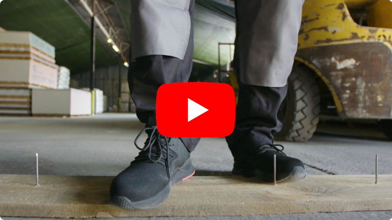 Резиновая подошва, удобная стелька и стелька с защитой от перфорации являются гибкими и, в отличие от обуви с традиционной полиуретановой подошвой и стальной вставкой, не ограничивают сгибание плюсны.