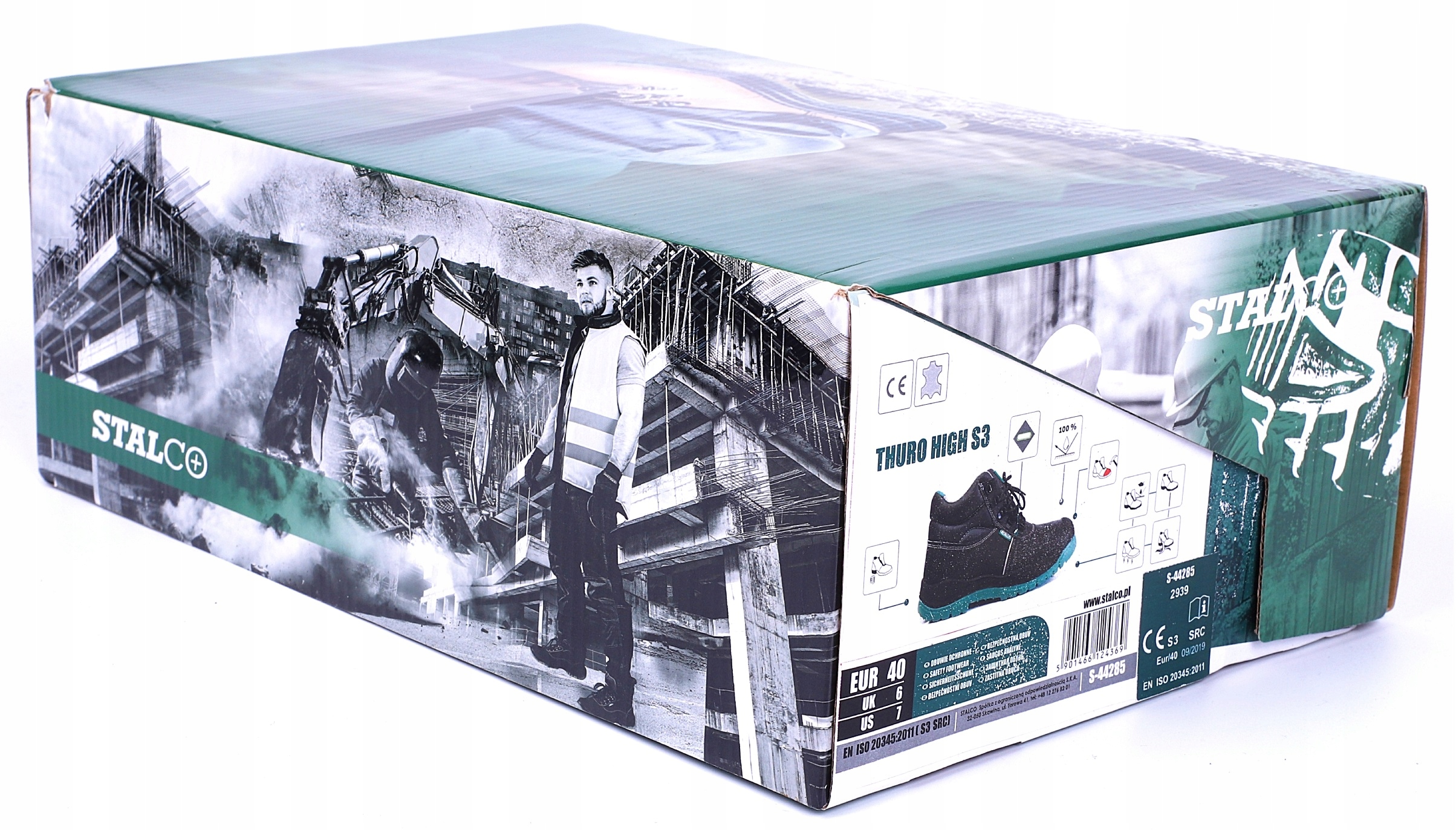 S3 - базовые свойства (в том числе устойчивость носка к ударам с энергией 200 Дж и раздавливанию до 15 кН), закрытая пяточная зона, антиэлектростатические свойства, поглощение энергии в пяточная часть, подошва устойчивая к дизельному маслу, устойчивость верхней части к водопроницаемости и впитыванию, устойчивость нижней части к проколам, лепка подошвы.