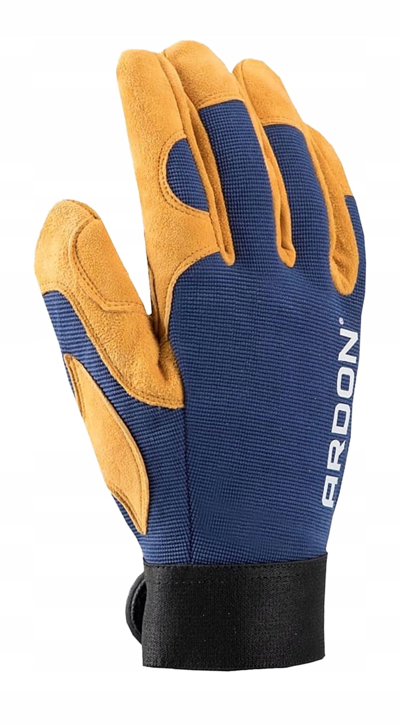 Профессиональные рабочие перчатки ARDON из полиэстера и эластана, дополнительно усиленные лицевой кожей.