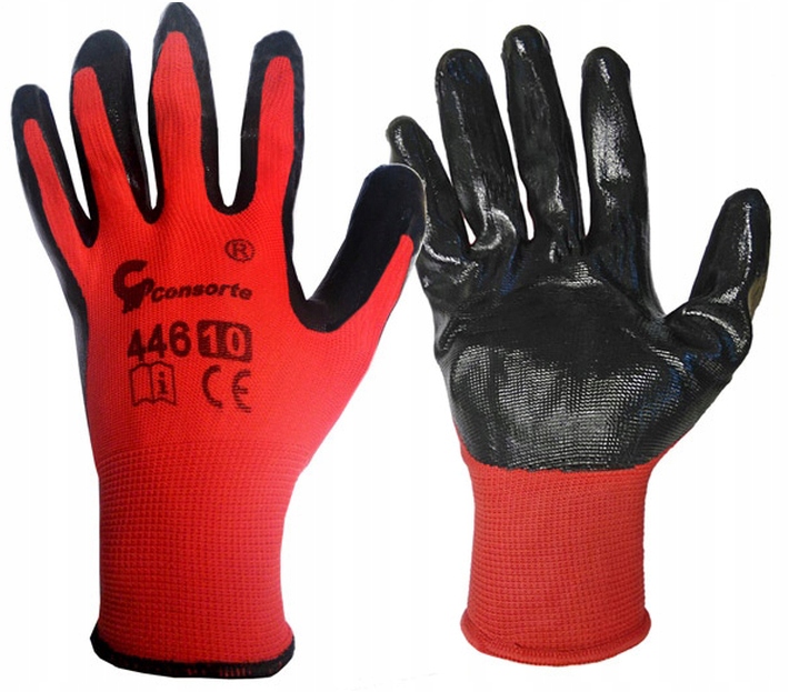 РАБОЧИЕ ПЕРЧАТКИ CONSORTE 446 НИТРИЛ КРАСНЫЙ 10