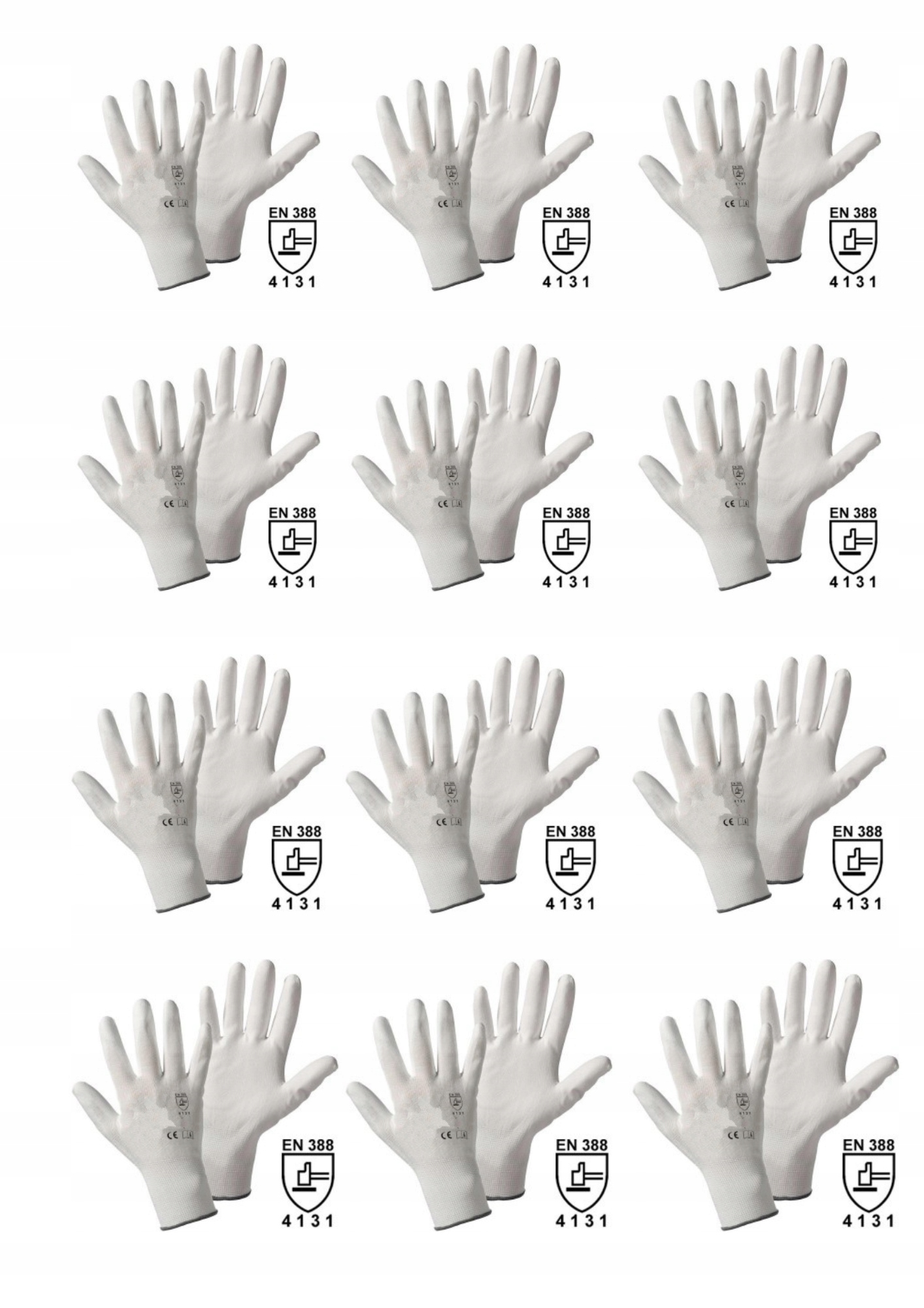 РАБОЧИЕ ПЕРЧАТКИ С ПУ ПОКРЫТИЕМ, БЕЛЫЕ - ПРОЧНЫЕ 12 ПАР