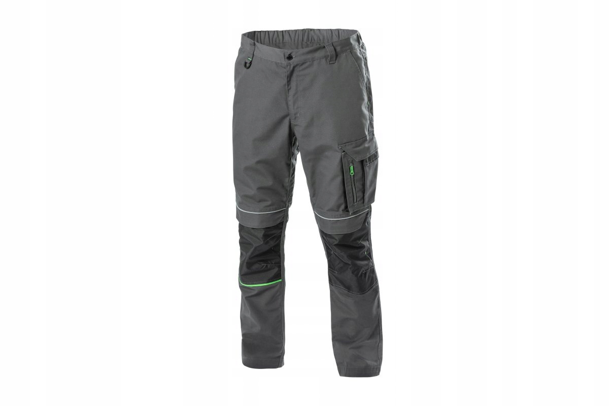 Тщательно сшитые мужские защитные брюки. Качественные материалы и прочное переплетение обеспечивают долговечность и высокий комфорт использования. Технический крой не ограничивает движения. Используемые светоотражающие детали позволяют повысить безопасность работы в темное время суток. Брюки доступны в модном темно-сером цвете с зелеными вставками и в широком размерном ряду (от S до 3XL). Идеально подходит для производственных и строителей. Также рекомендуется для слесарей, сервисников и техников.