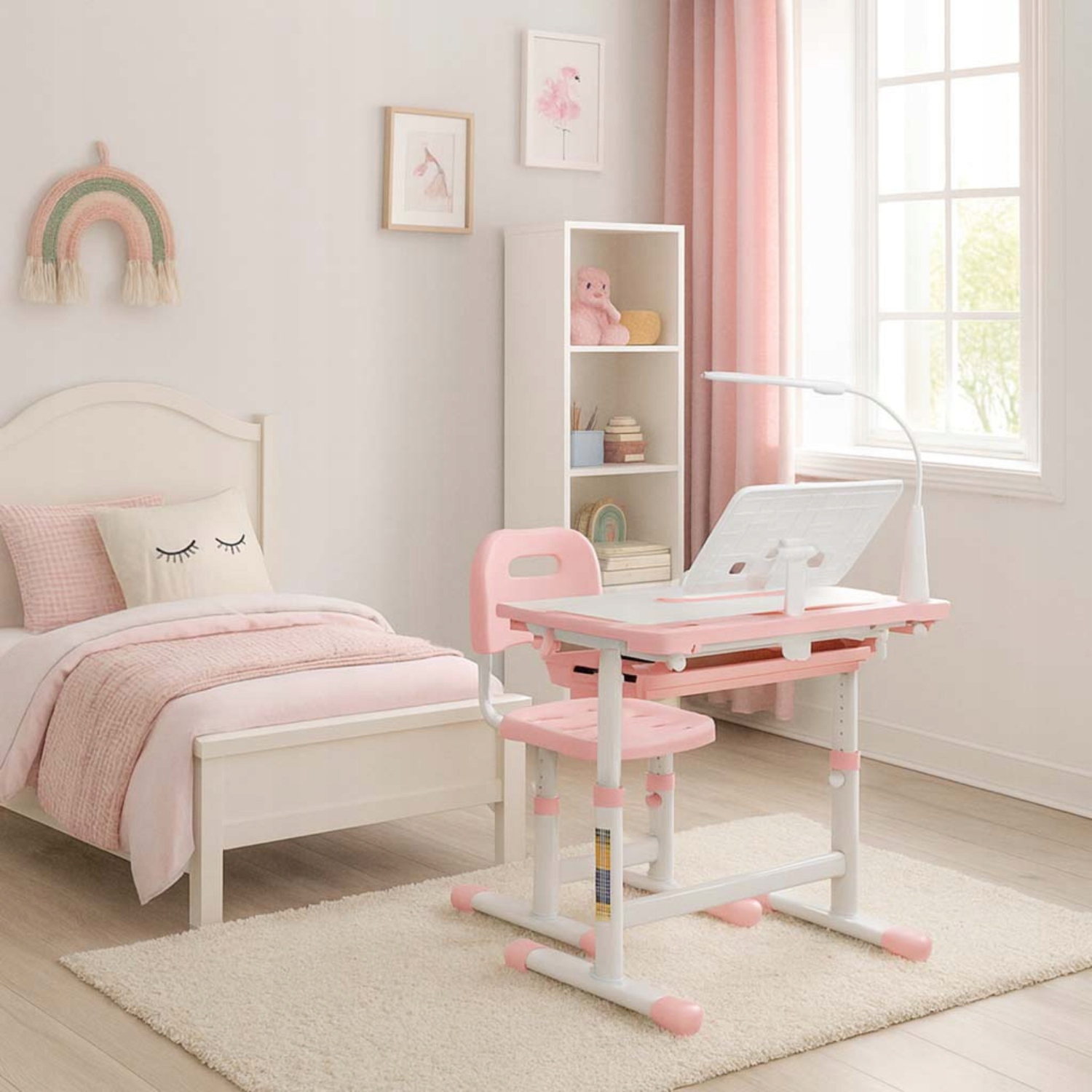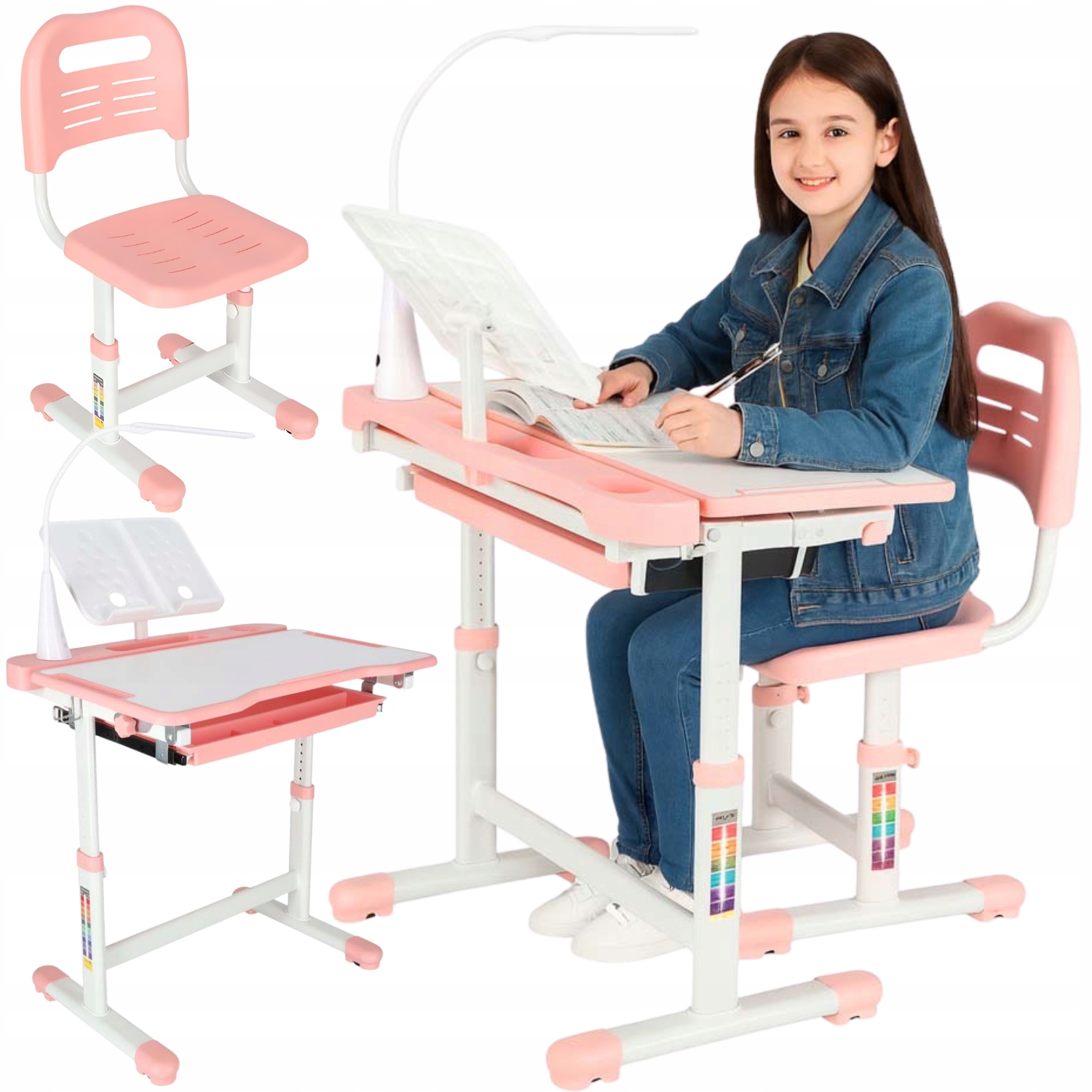 Эргономичный детский стол с регулируемым стулом и светодиодной лампой.