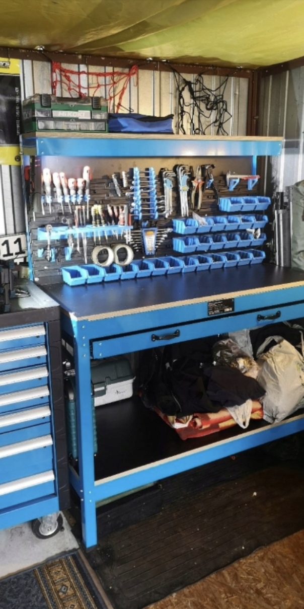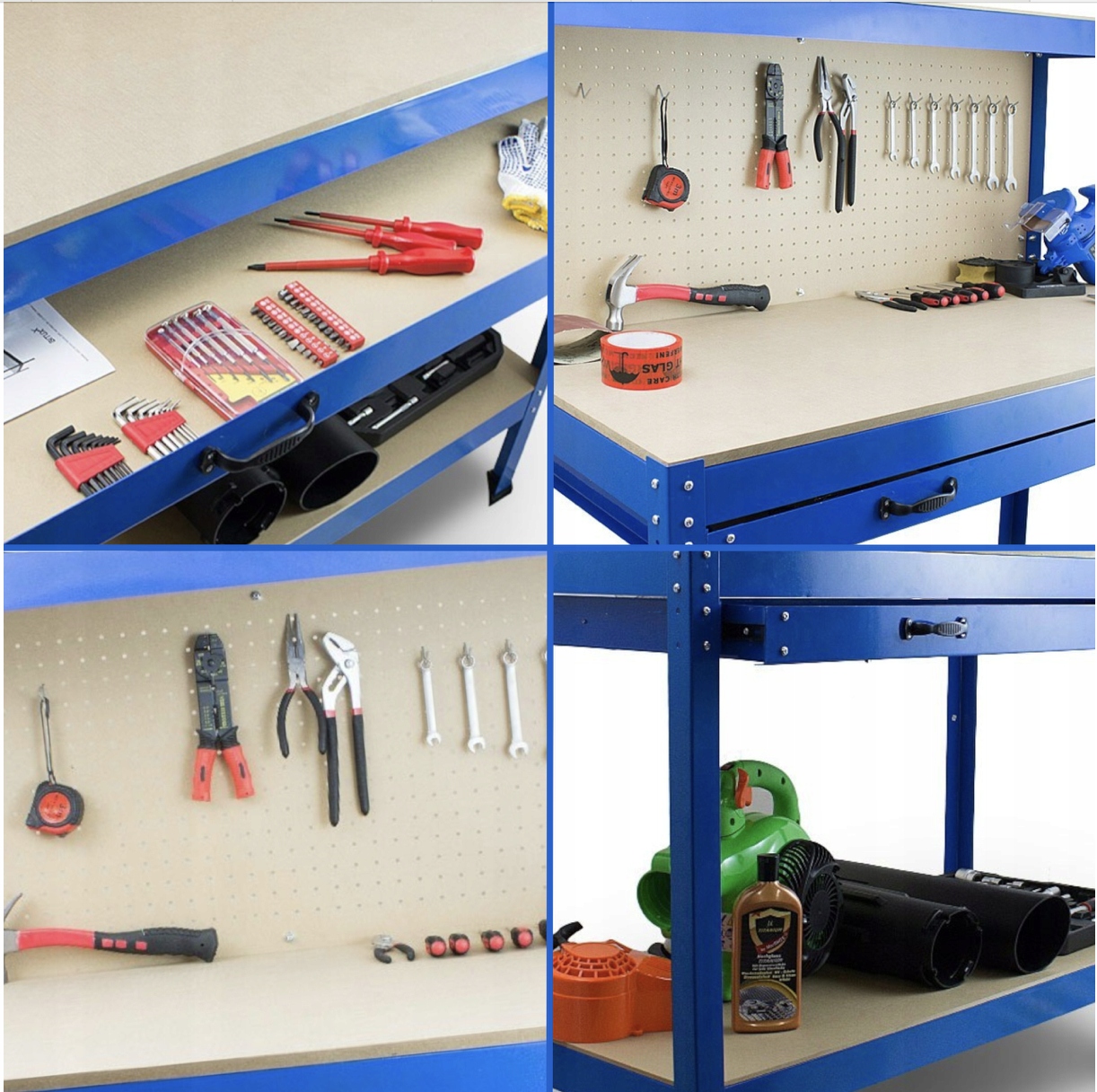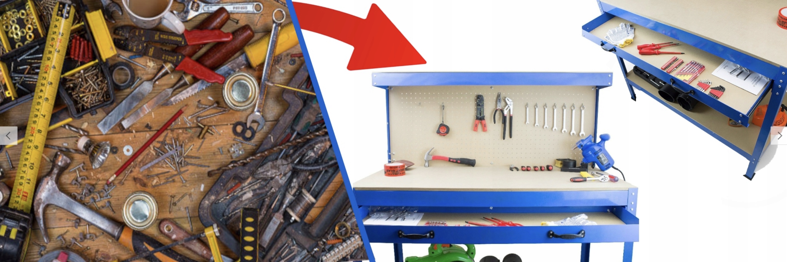 <Семинар обеспечивает не только удобство, но и порядок, что имеет решающее значение для каждого DIY.⚙ благодаря высокой грузоподъемности до 100 кг , ручки для инструментов и практического ящика , работа становится намного проще и эффективнее.