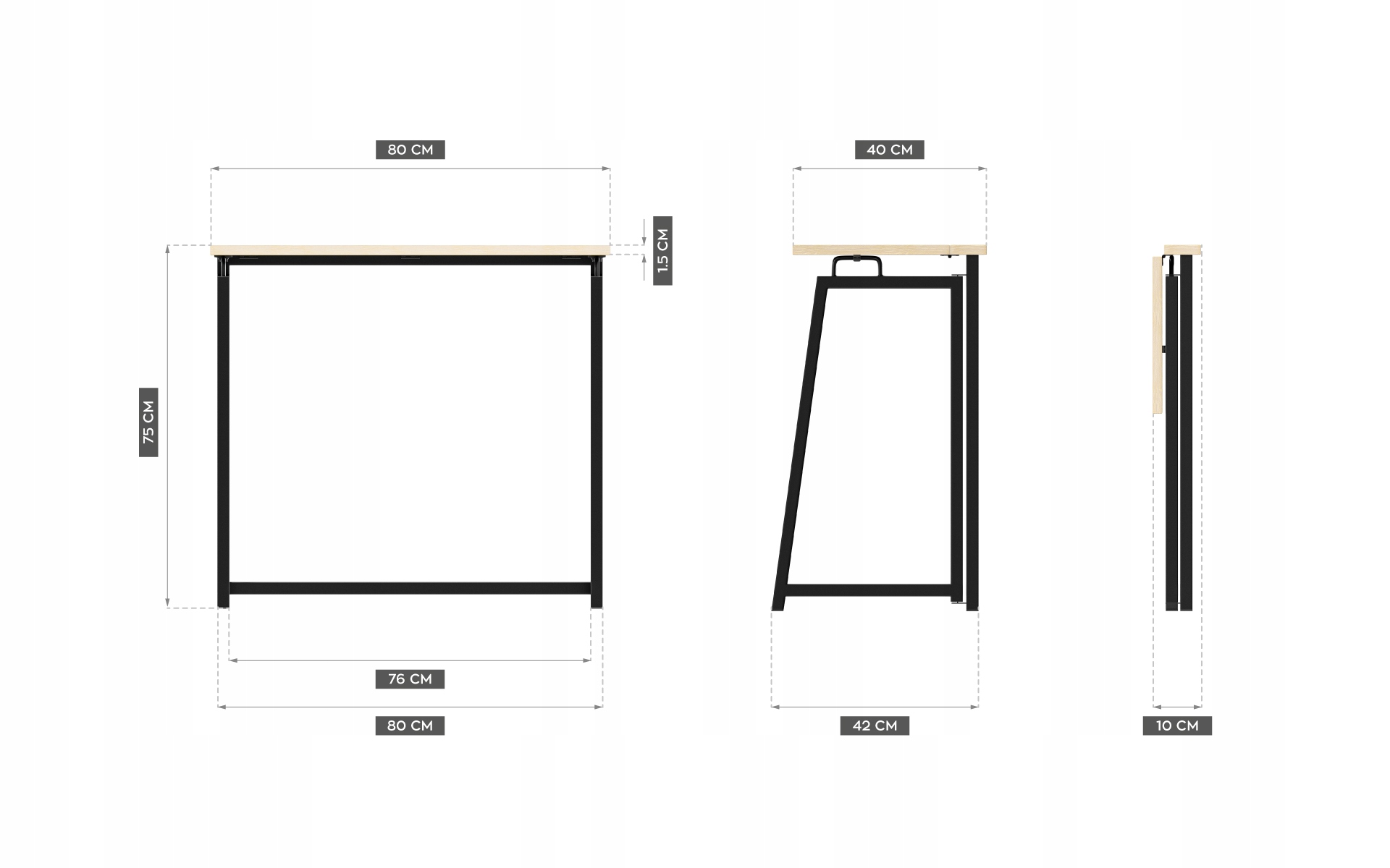 - В сложенном виде ширина стола составляет всего 10 см, что делает его идеальным для небольшого мир.
