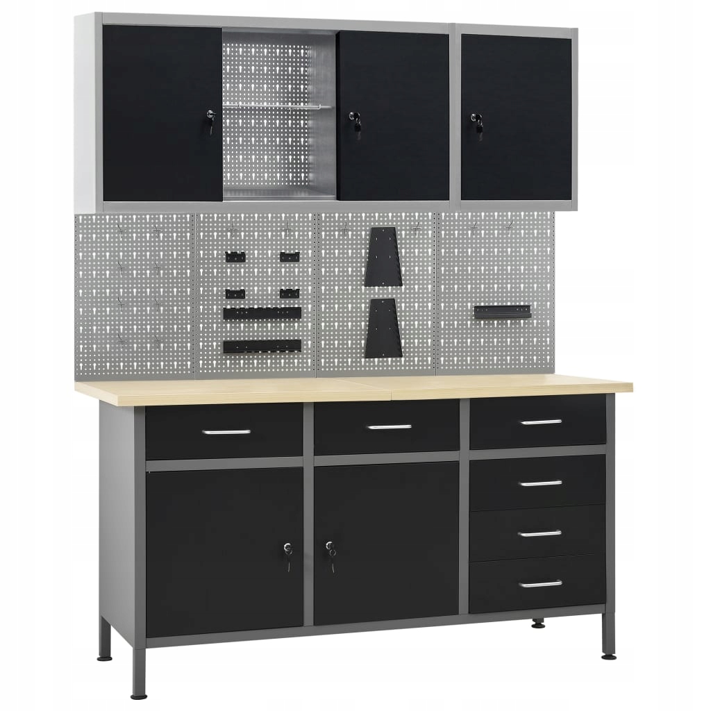 Прочная таблица мастерской, отличается большим пространством для хранения и емкостью 500 кг. Большой и твердый вершина является стабильной платформой для всех ремонтных работ. Таблица семинаров имеет 6 ящиков для правильной организации инструментов, деталей и аксессуаров, таких как винты, гвозди и клейкую ленту. Все ящики оснащены направляющими подшипниками для плавного движения. Мебель имеет 2 полки и большое пространство из 2 закрытых двери, в которых упражнения, барабаны с кабелями и шлифовальными средствами могут быть легко размещены. Кроме того, ноги регулируются. Эта рабочая станция сделана из лучшей стали и сопоставки, благодаря которой она чрезвычайно прочная, долговечная и простая в чистке. Набор прост в установке.