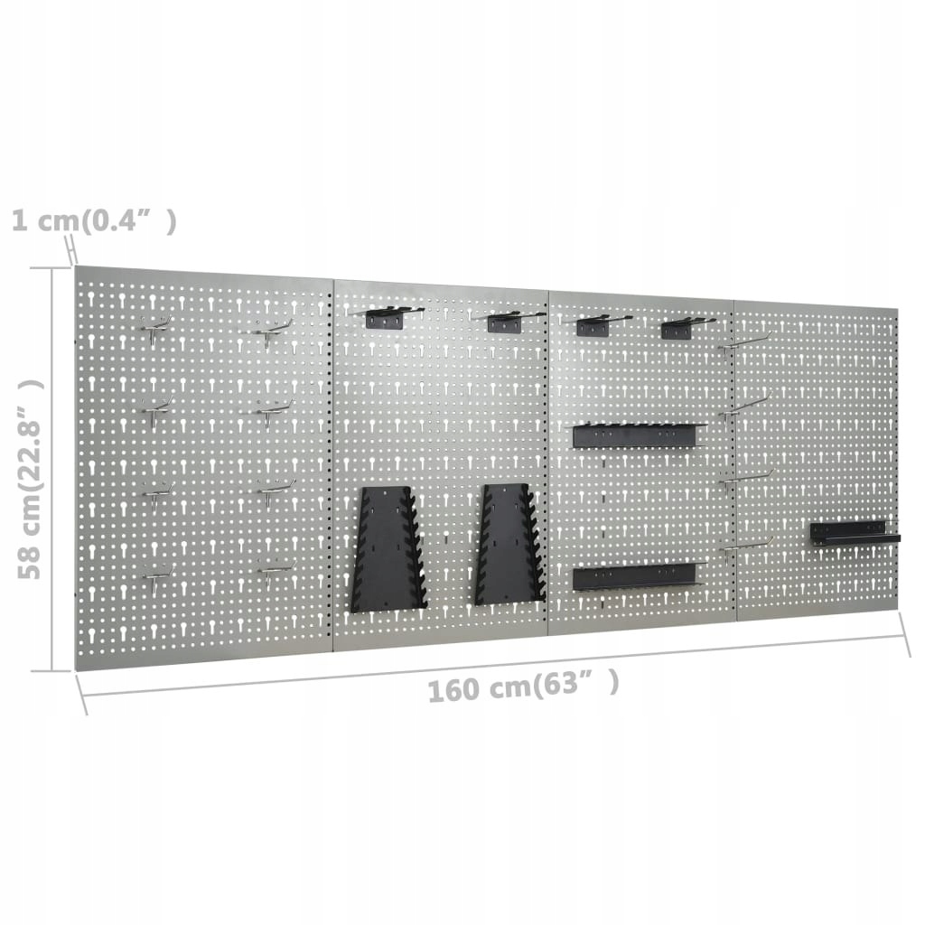 Панели для инструментов изготовлены из прочной стали и выдерживают вес различного оборудования, такого как дрели, плоскогубцы, отвертки и гаечные ключи. Доски перфорированы, что позволяет легко и безопасно подвешивать инструменты. 4 панели можно соединить вместе, чтобы повысить их жесткость. Это идеальное решение для вашего верстака и верстака благодаря ширине 160 см.