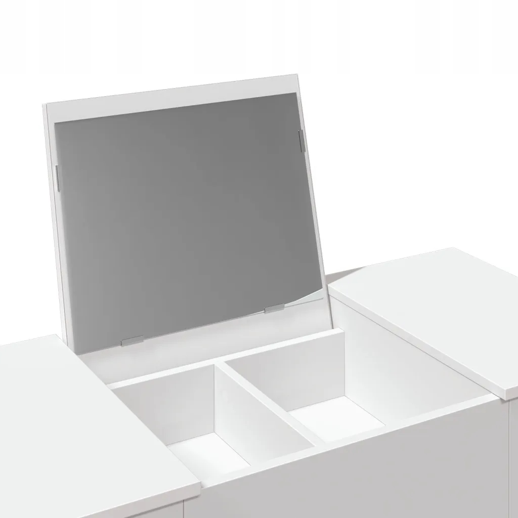 Стол с зеркальным туалетным столиком с зеркалом, белым, 100x45x76 см.