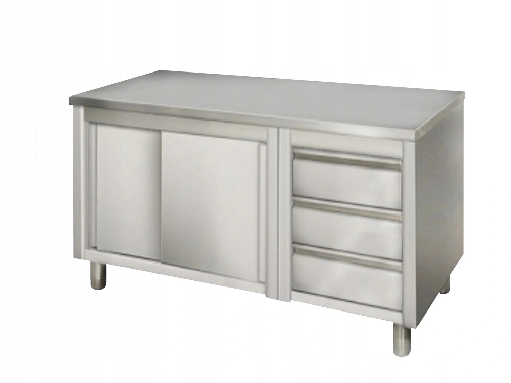 НОВИНКА - ПРОМЫШЛЕННЫЙ РАБОЧИЙ СТОЛ - ШКАФ ИЗ НЕРЖАВЕЮЩЕЙ СТАЛИ ЗАКРЫВАЕТСЯ РАЗДВИЖНОЙ ДВЕРЬЮ С ПОЛКОЙ ВНУТРИ + 3 ЯЩИКА