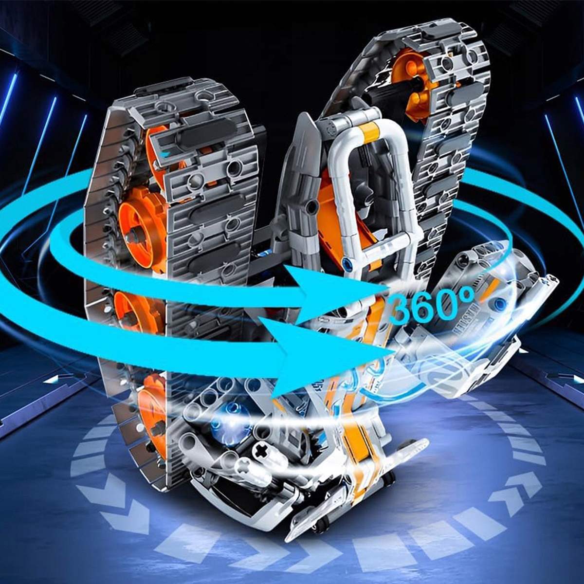 Робот может двигаться вперед, назад, вбок, а также может вращаться вокруг собственной оси.
