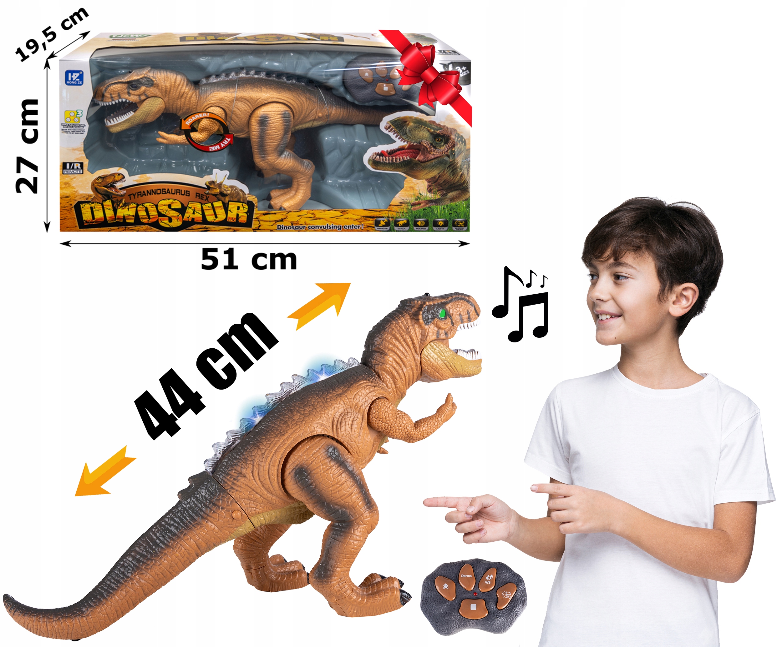 РОБОТ ДИНОЗАВР ПУЛЬТ ДИСТАНЦІЙНОГО КЕРУВАННЯ СВІТЛОДІОДНА МУЗИКА