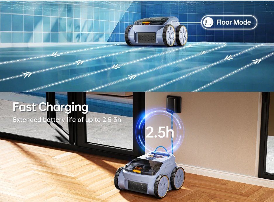 Представьте себе очиститель вакуумного бассейна, который без усилий скользит на воде, используя передовую технологию 3D-Navi для эффективного сбора загрязнения на протяжении более 1,5 часов. Благодаря этой инновационной технологии ваш бассейн будет блестящим в мгновение ока, все с минимальными усилиями с вашей стороны.