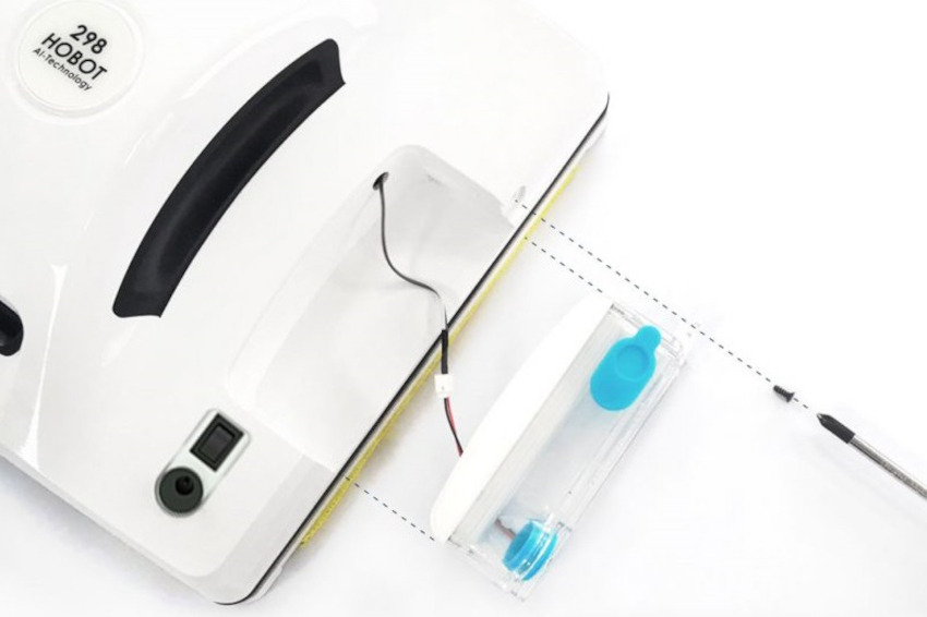HOBOT-298 оснащен встроенным дозатором моющих средств HOBOT. Ультразвуковая насадка очень хорошо работает с моющим средством или дистиллированной водой. Он экономит расход воды и моющих средств, используя всего 1 см3 воды на м2.