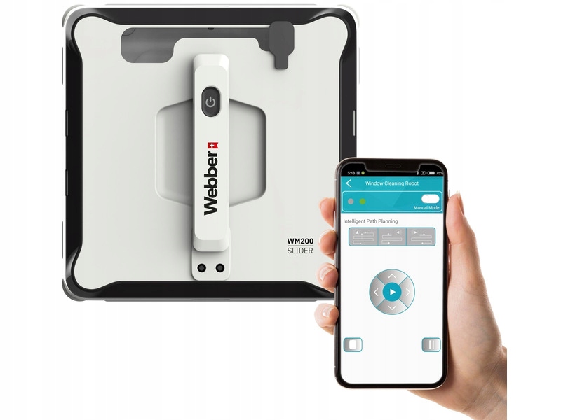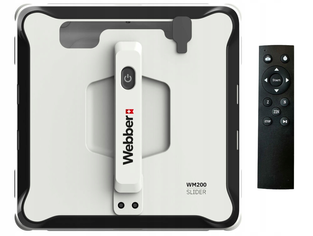 В комплект с роботом для мытья окон WEBBER WM200 входит эргономичный пульт, позволяющий управлять устройством >из любой точки комнаты. Он позволяет удобно переключать режимы работы, запускать, останавливать и управлять движением робота.
