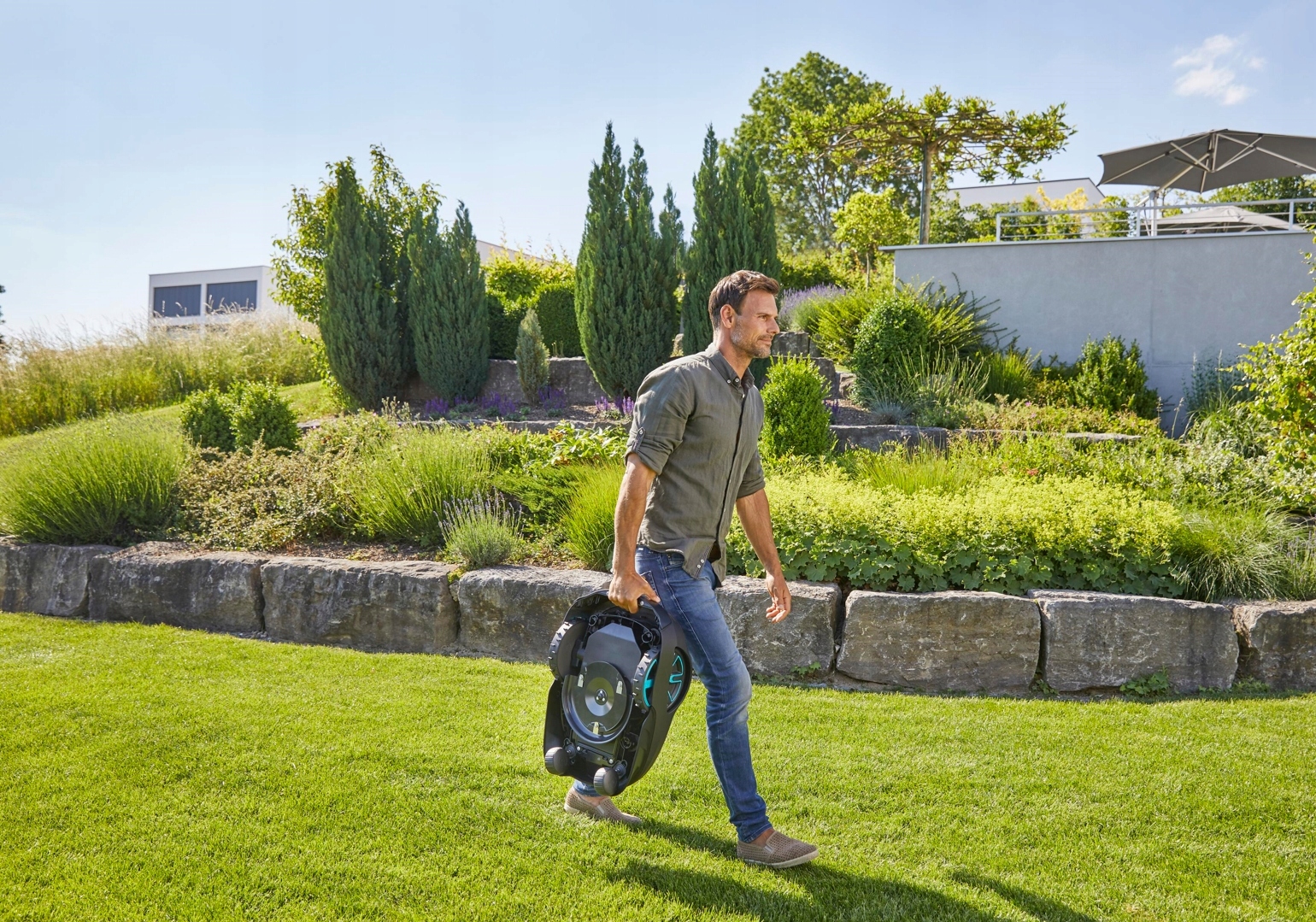 Ограждающий провод гибко и надежно определяет зону кошения, благодаря чему робот-косил работает только на определенной территории. Чрезвычайно чувствительные датчики столкновений гарантируют, что никакие препятствия в саду не остановят робота. Как только машина поднимается, другой датчик немедленно останавливает ножи, предотвращая возможные травмы.