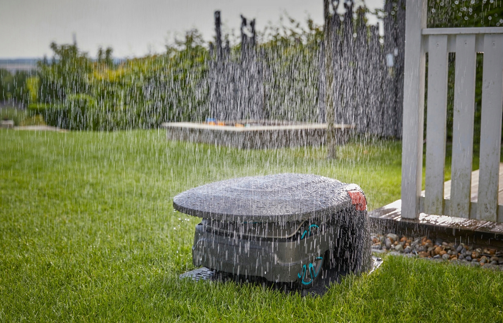Интеллектуальный датчик замерзания определяет, когда температура приближается к нулю, и прекращает стрижку, защищая таким образом газон.