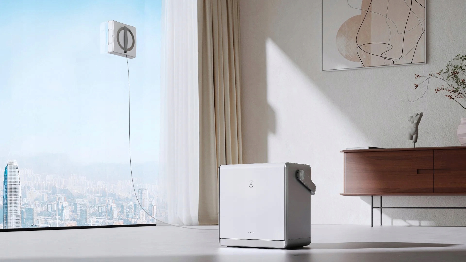 Вес станции весом 5,2 кг поддерживается силой всасывания более 800 Н, что предотвращает падение WINBOT W2 OMNI в экстремальных обстоятельствах. Страховочный трос изготовлен из трехслойного прочного композитного материала с высокой прочностью на разрыв до 100 кг (увеличение на 20 кг по сравнению с предыдущей версией). Станция также оснащена страховочным тросом длиной 1 м в нижней части станции для дополнительной защиты.