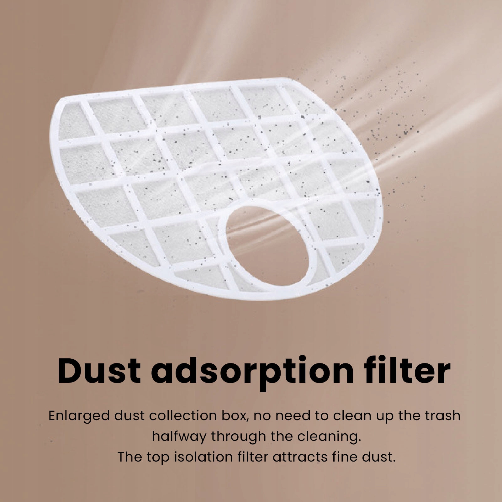 3. Эффективная фильтрация: роботизированный вакуумный фильтр может улавливать мелкие частицы пыли в движущемся мусорном баке. Благодаря двум боковым щеткам он может расширить зону пылесоса и собирать пыль и мусор на открытых полах или вдоль стен и краев.