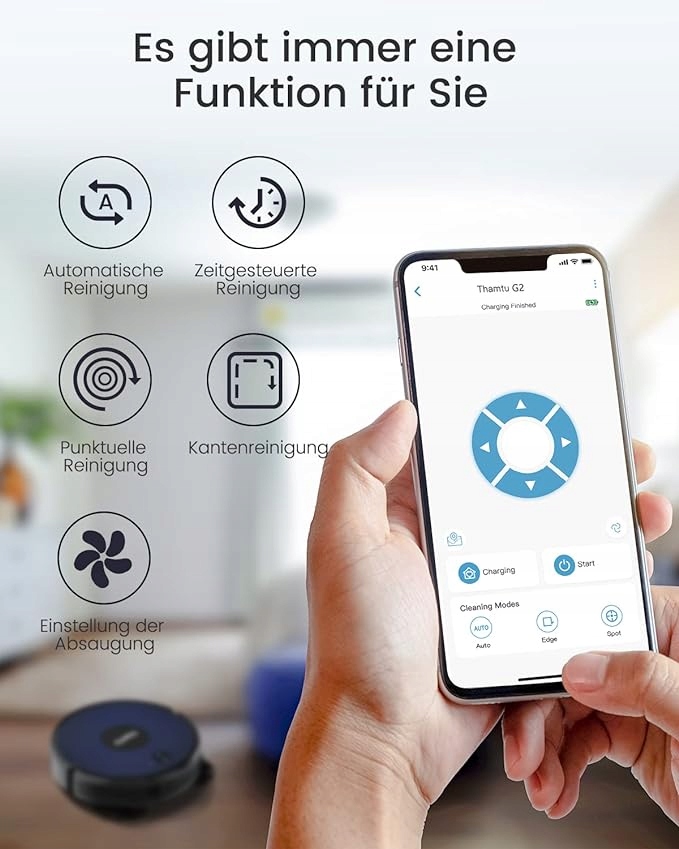 Робот-пылесос Thamtu G2 Lite с функцией вытирания, волосы не путаются в устройстве, автоматическая зарядка, совместим с Alexa и Google Assistant, подходит для семей с домашними животными