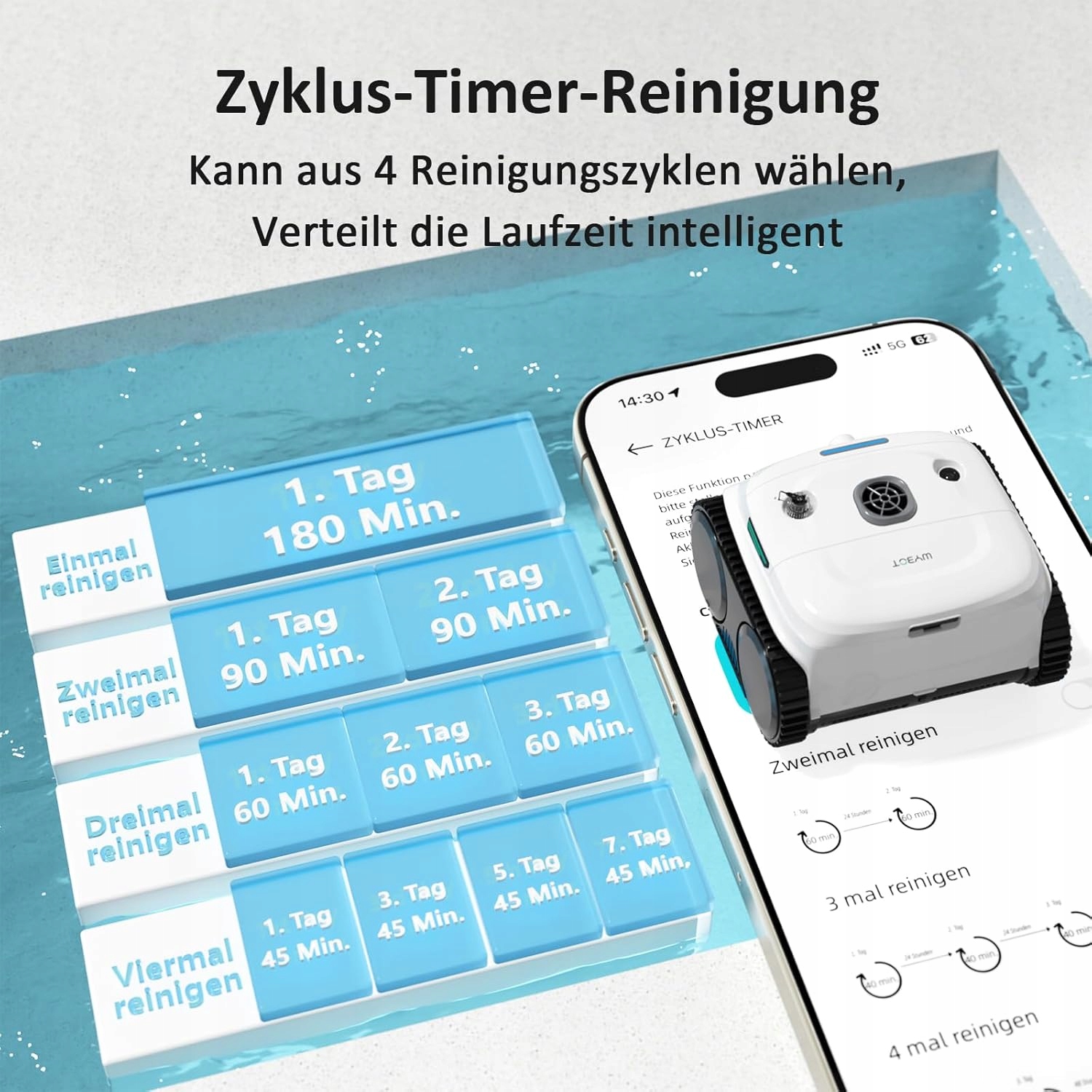 <р> Мощный бесщеточный двигатель обеспечивает превосходную очистку дна, стенок и ватерлинии, что делает робота подходящим для бассейнов площадью до 180 м². Совместим с наземными и подземными бассейнами. <р> Оптимизируйте свой маршрут уборки с помощью приложения и используйте 8 интеллектуальных маршрутов уборки. Благодаря таймеру робот начнет уборку в выбранное вами время, что облегчит уход за бассейном.Оснащенный фильтрами, способными удалять микроскопические загрязнения, он обеспечивает кристально чистую воду, идеально подходящую для отдыха и развлечений.