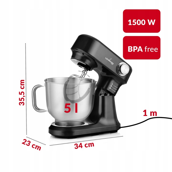 Откройте для себя новый уровень комфорта на своей кухне с планетарным роботом LEHMANN Celesto черного цвета — незаменимым помощником каждого домашнего повара! Благодаря мощности до 1500 Вт, вместительной 5-литровой чаше из нержавеющей стали и 12-скоростному регулированию скорости вы легко сможете приготовить тесто для пиццы, взбить сливки или перемешать густые массы. Прочная конструкция, эстетичный блеск и стильный внешний вид делают робота Celesto украшением любой кухни.