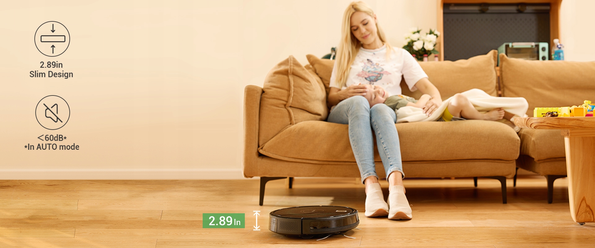 компактный и стройный, 2,89 дюйма, что позволяет ему двигаться на низкой мебели и трудно добраться до углов. Тихая очистка, не нарушая свою жизнь, менее 60 дБ в тихом режиме, уровень шума, похожий на электрическую щетку.