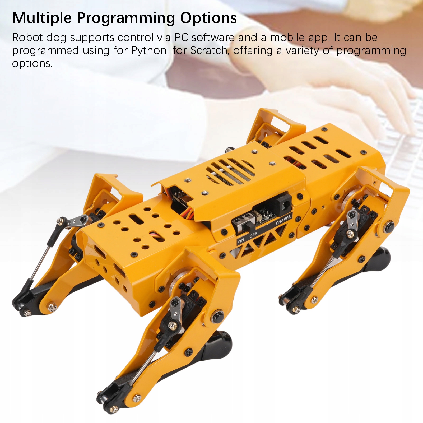 4. Расширение расширения, Unialile Servo: Робот -собака может быть усилена различными датчиками и электронными модулями, что позволяет широкому спектру творческих приложений. Robot Dog оснащена 8 -скоростными сервателями высокой скорости, обеспечивая высокую точность и прочность. Структура соединения ноги позволяет быстро и тщательно ходить.