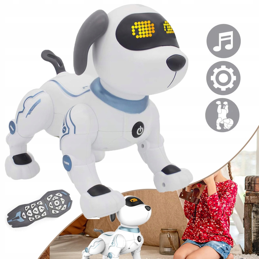 -Интерактивная собака-робот: этот умный щенок может исполнять различные танцы под разную музыку, и ваш ребенок будет веселиться, когда вы дотрагиваетесь до его подбородка, щенок будет реагировать на различные милые движения и звуки и будет выполнять различные действия с семью различными командами, как настоящая собака-робот, сопровождающая ваших детей.